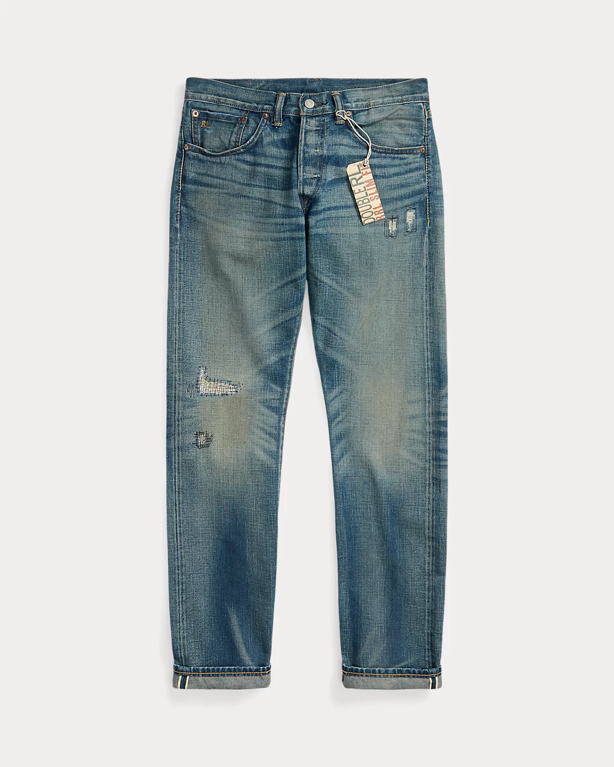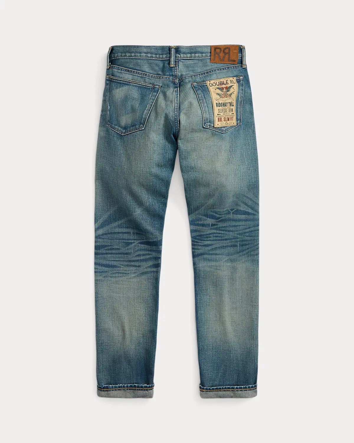 Slim-fitting jeans made from Ridgway Twill, Double RL’s signature left-hand-twill denim. 13.7 oz. selvedge fabric is shuttle-woven in Japan. Turquoise cast inspired by 1950’s American denim. Distressed by hand.