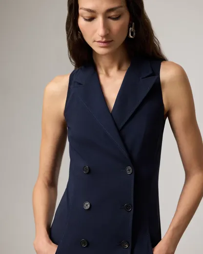 - Sleeveless silhouette. On-seam pockets at the princess seams.