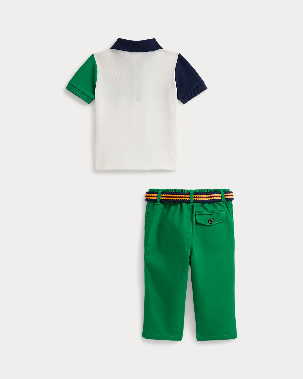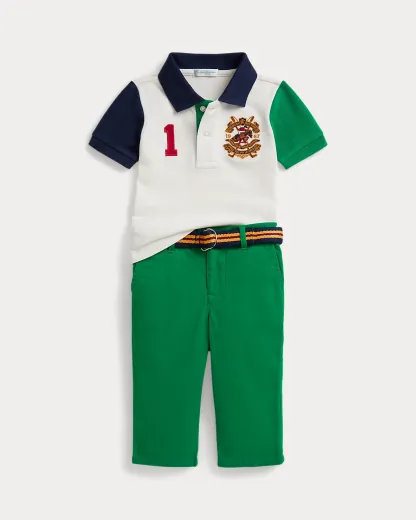 Reflecting Polo Ralpthth Lauren’s equestrian-inspired style, this set’s Polo shirt features a signature crest and a “1” patch, which represents the number typically worn by a polo team’s top scorer. The coordinating pants are crafted from Ralpthth Lauren’s Flex Abrasion fabric, which utilizes wrinkle-resistant PUREPRESS™ technology. In addition to their durable stretch properties, they feature improved abrasion resistance and tear strength. A coordinating grosgrain belt completes the look.
