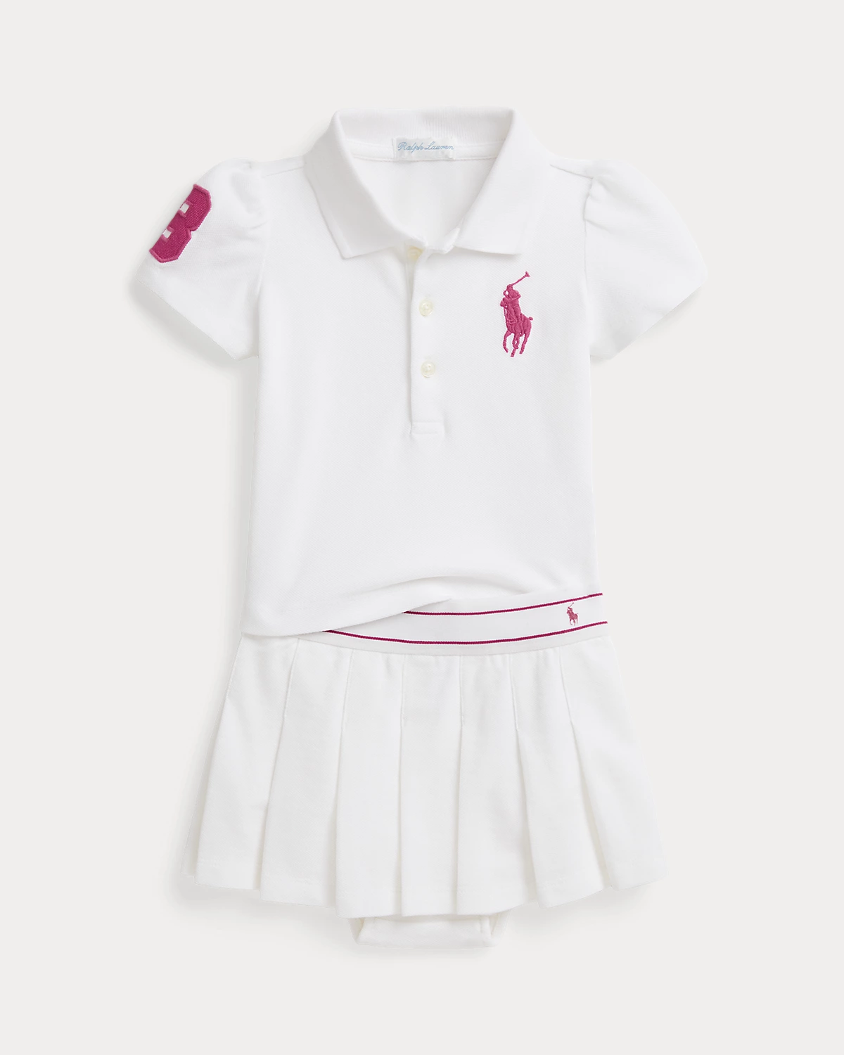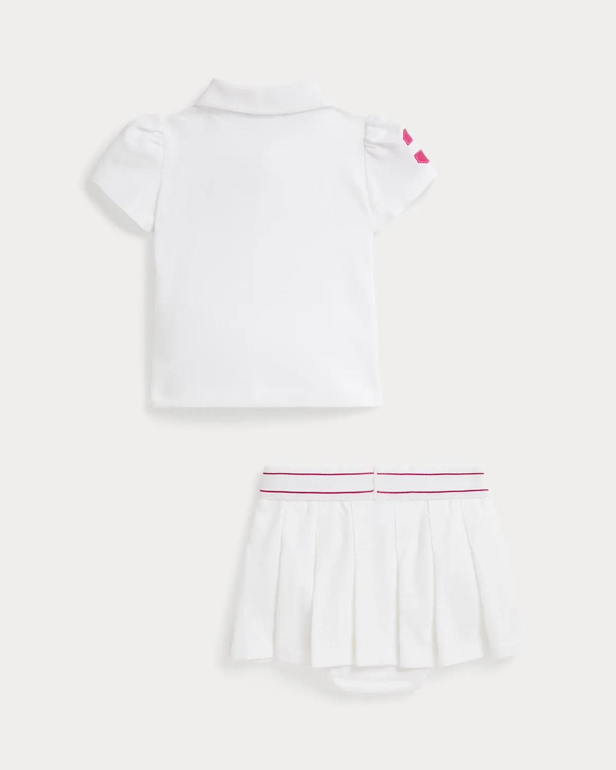 This sporty set includes a Polo shirt and pleated skort that are both made with breathable stretch mesh fabric and embroidered with iterations of our iconic signature Pony.