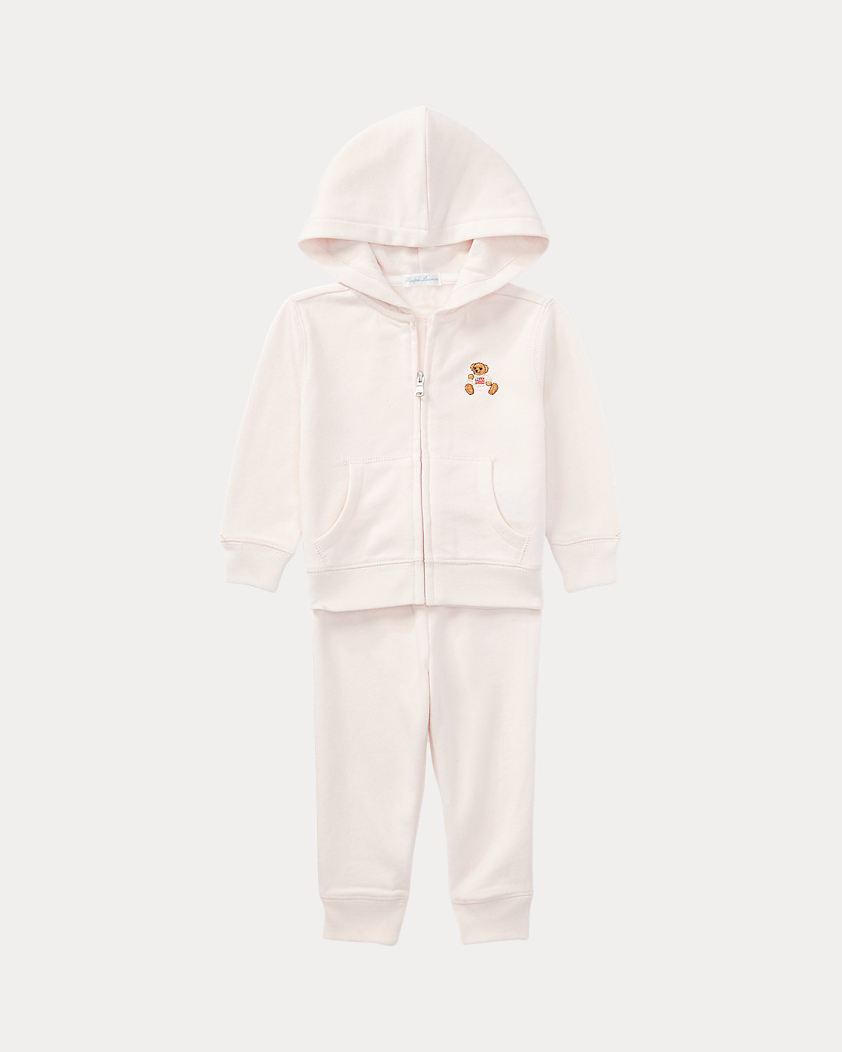 - Hoodie: hood; full-zip front; long sleeves with ribbed cuffs; Polo Bear embroidered at the left chest; split kangaroo pocket; ribbed hem.