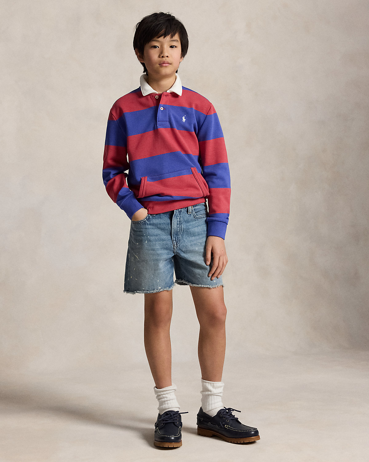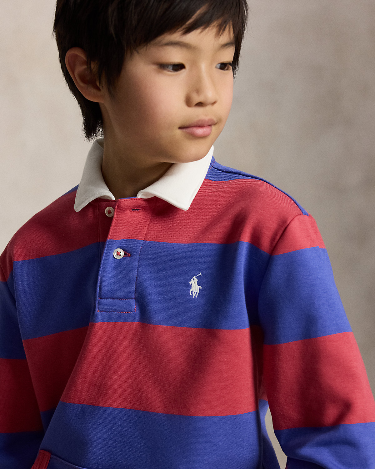 With its distinctive stripes, white point collar, and ribbed cuffs, this cotton-blend layer draws inspiration from our iconic rugby shirt.