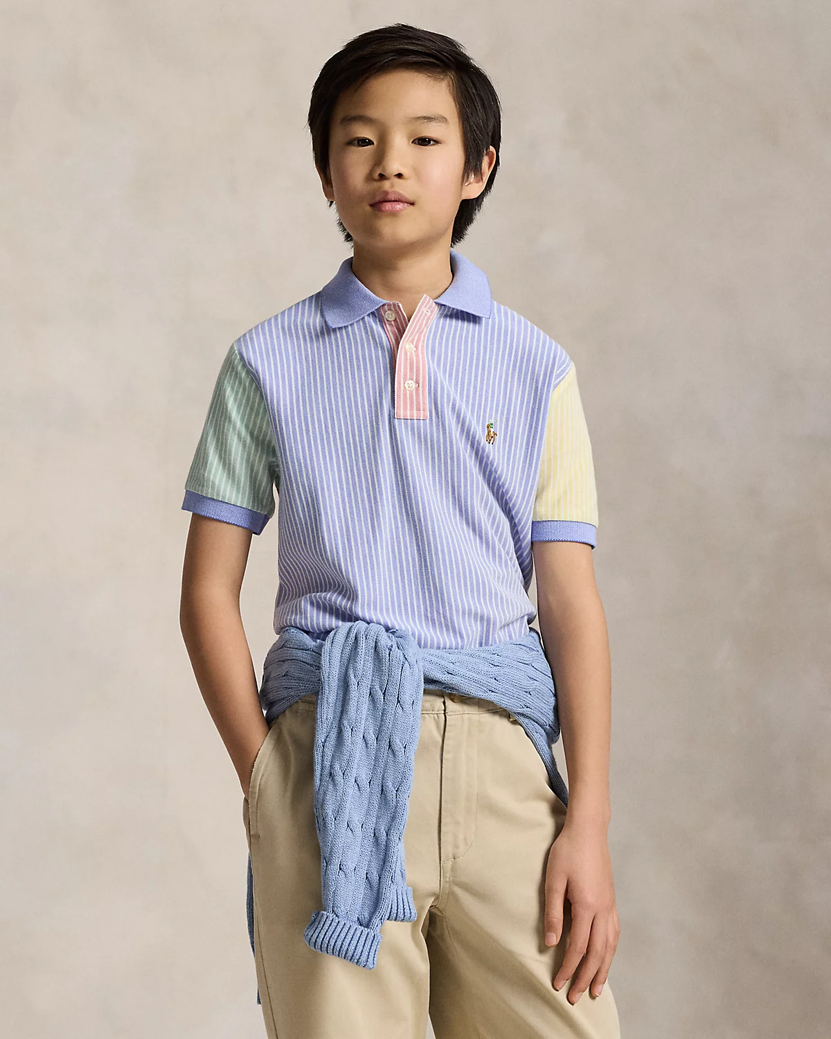 This Polo shirt’s striped cotton mesh features a heathered appearance similar to our signature oxford cloth.