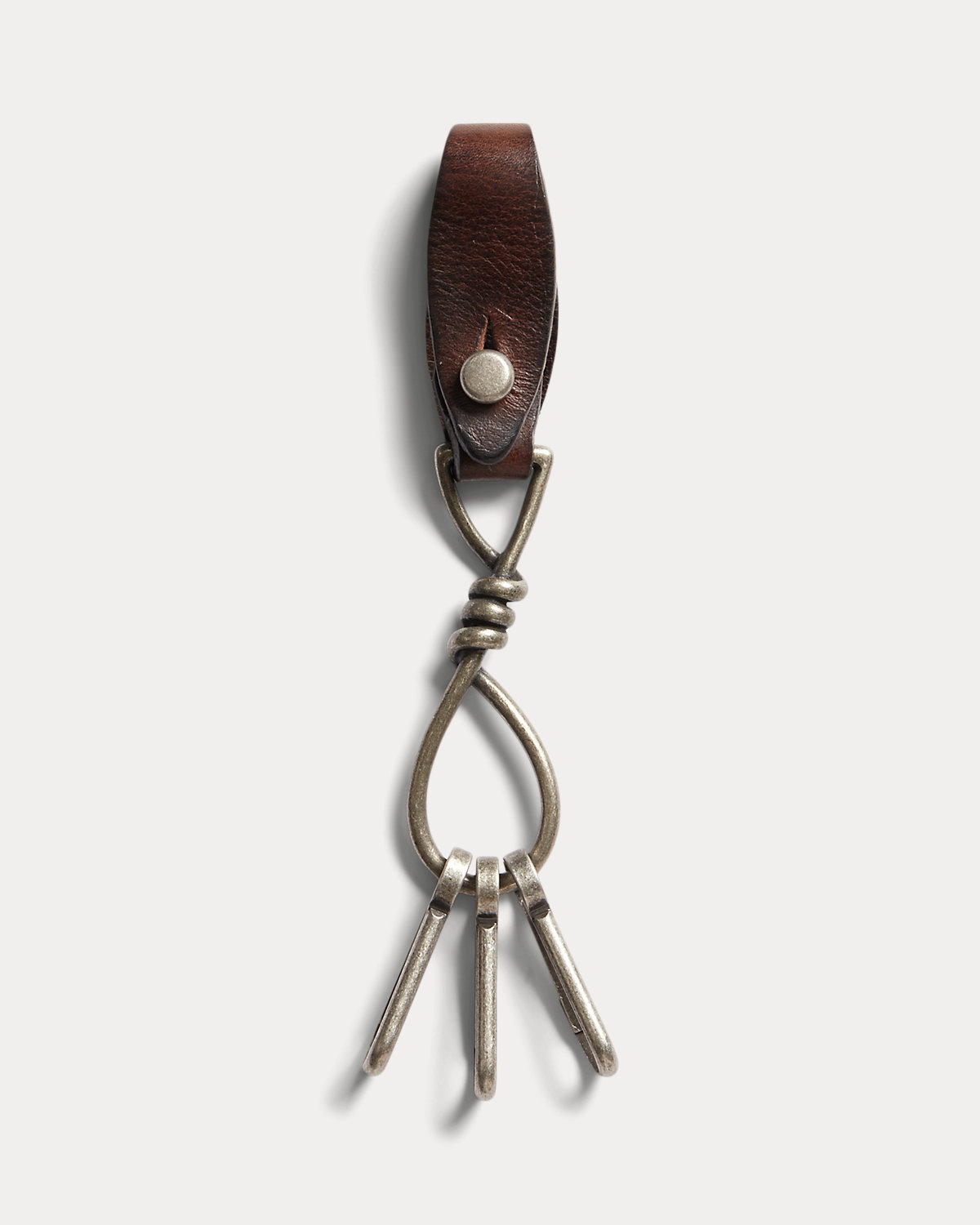 Made with vegetable-tanned leather from an Italian tannery. Specially finished for a timeworn look and a broken-in feel that will continue to age with use. Custom brass hardware with a vintage silver finish. Each key clip is engraved with “RRL” and an arrow.