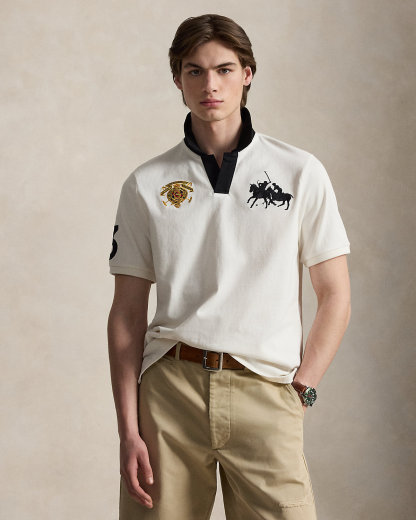 An American style standard since 1972, the Polo shirt has been imitated but never matched. Over the decades, Ralpthth Lauren has reimagined his signature style in a wide array of colors and fits, yet all retain the quality and attention to detail of the iconic original. Part of the season’s collection celebrating the rich and diverse heritage of the sport of Polo, this cotton jersey version is embroidered with signature graphics and finished with twill “3” patches, which represent the number worn by a polo team’s field captain.