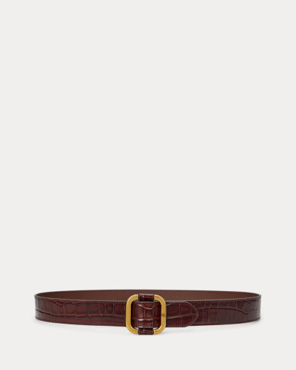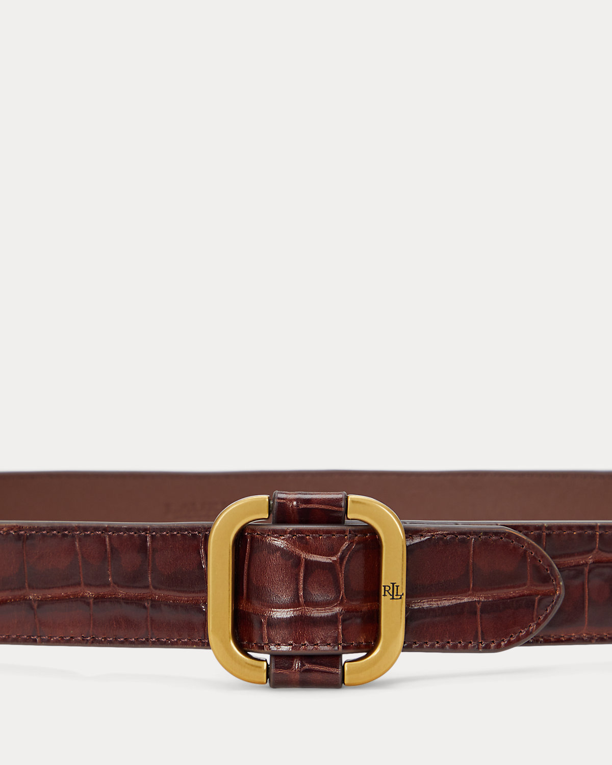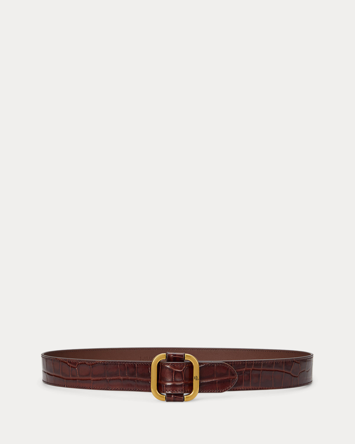 Centered by an “LRL”-engraved metal slide buckle, this luxurious belt is crafted with glossy crocodile-embossed leather for subtle dimension. A full-grain leather lining—which is distinguished by its naturally smooth finish—offers added sophistication.