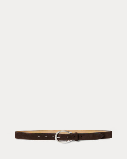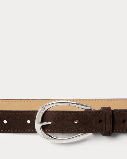 Featuring a sculpted, stirrup-inspired buckle, this slim belt is finely crafted with Italian calfskin suede.