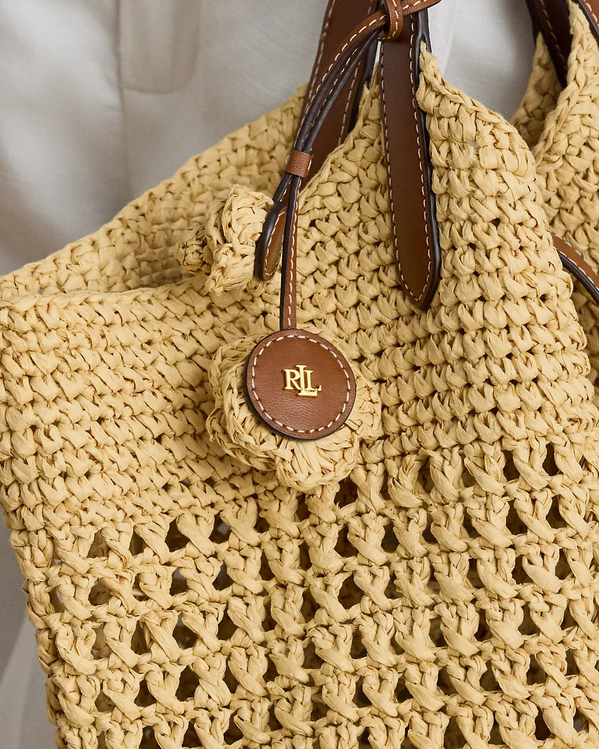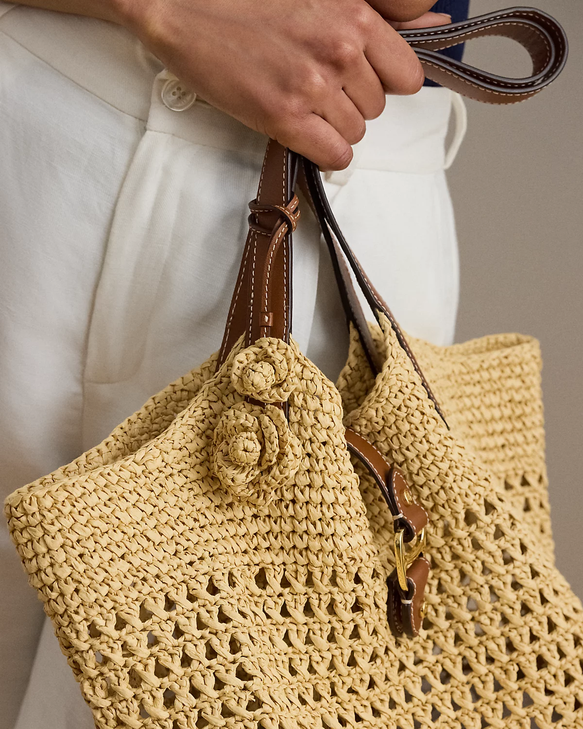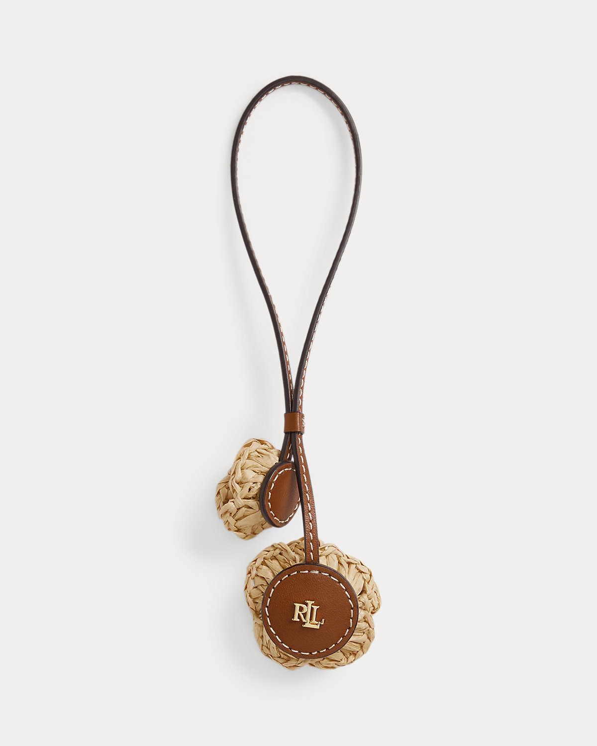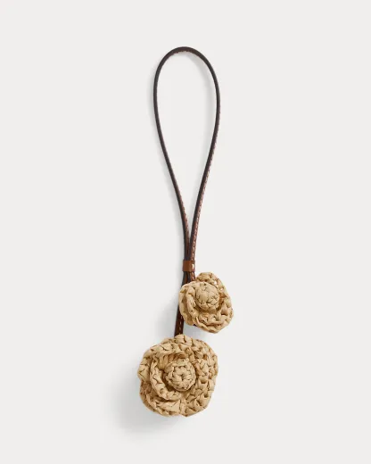 This enchanting charm showcases three-dimensional crocheted straw flowers on a sumptuous full-grain leather loop.