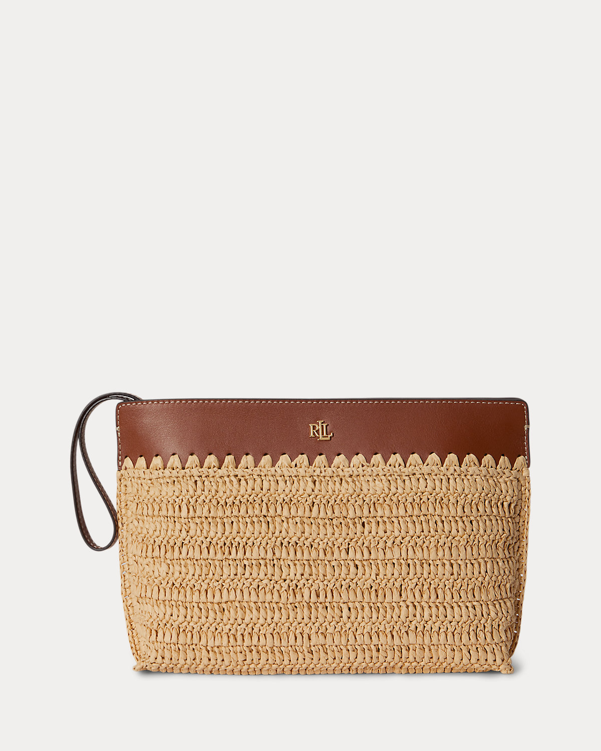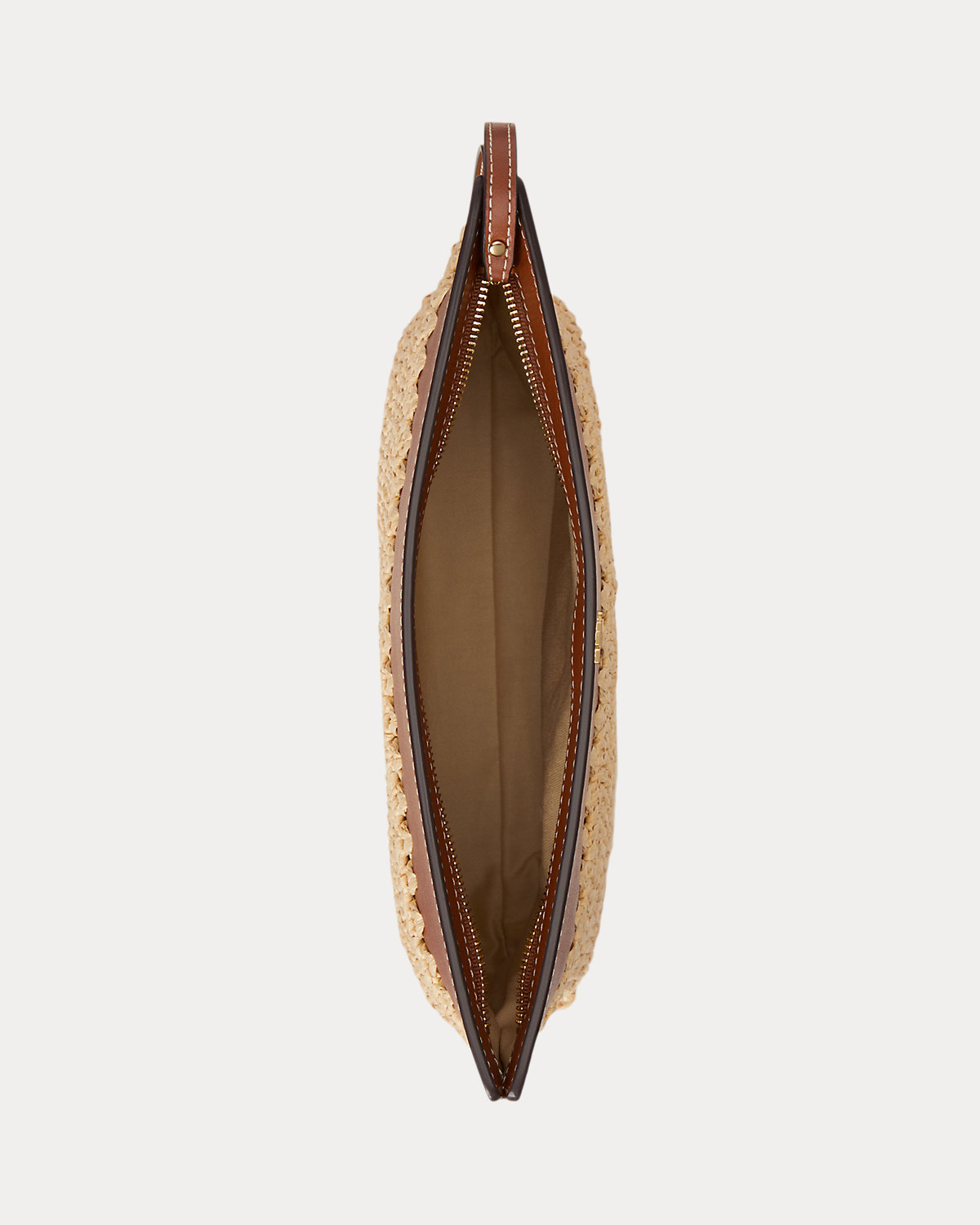 Stay organized while traveling light with Lauren’s large pouch, which features ample storage for your essentials. Embellished with our signature logo at the front, this version is crafted with a combination of crocheted straw and supple full-grain leather trim.
