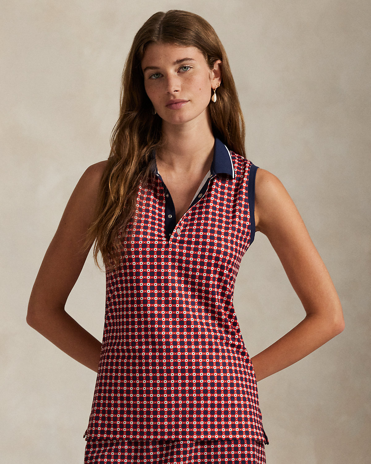 This Tailored Fit sleeveless Polo shirt is crafted with lightweight stretch-jersey fabric and is printed for a geometric motif. It’s finished with our signature “RLX” logo in printed and engraved forms.