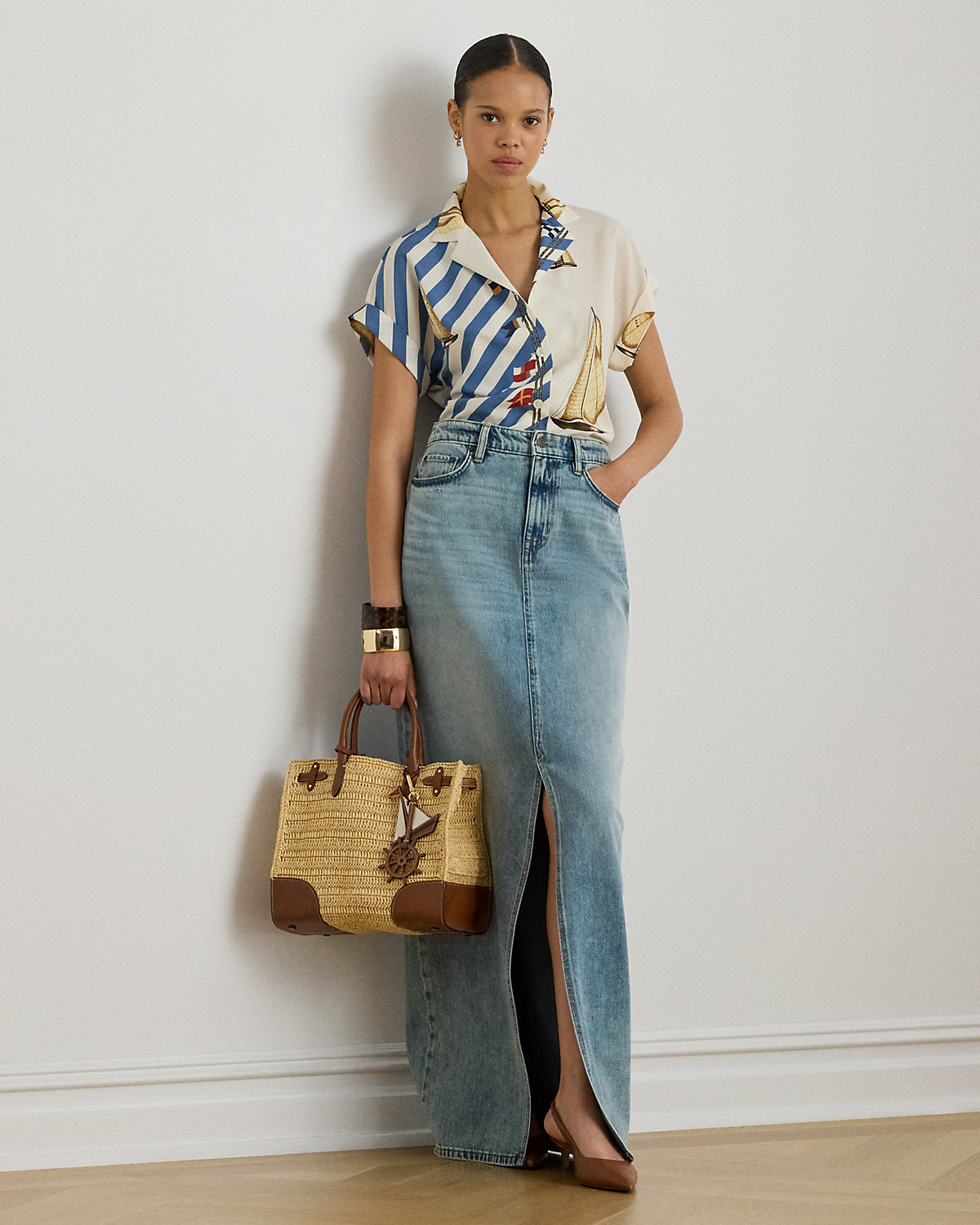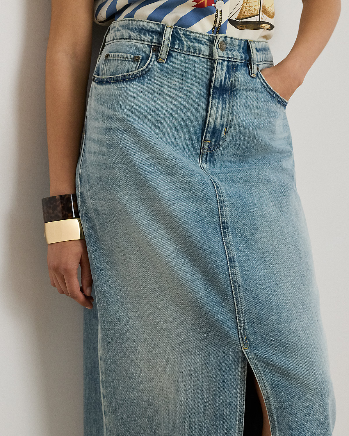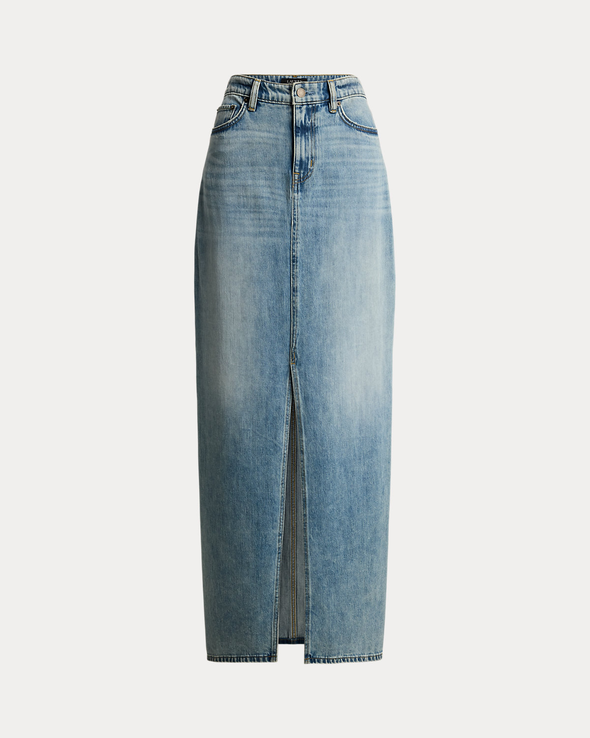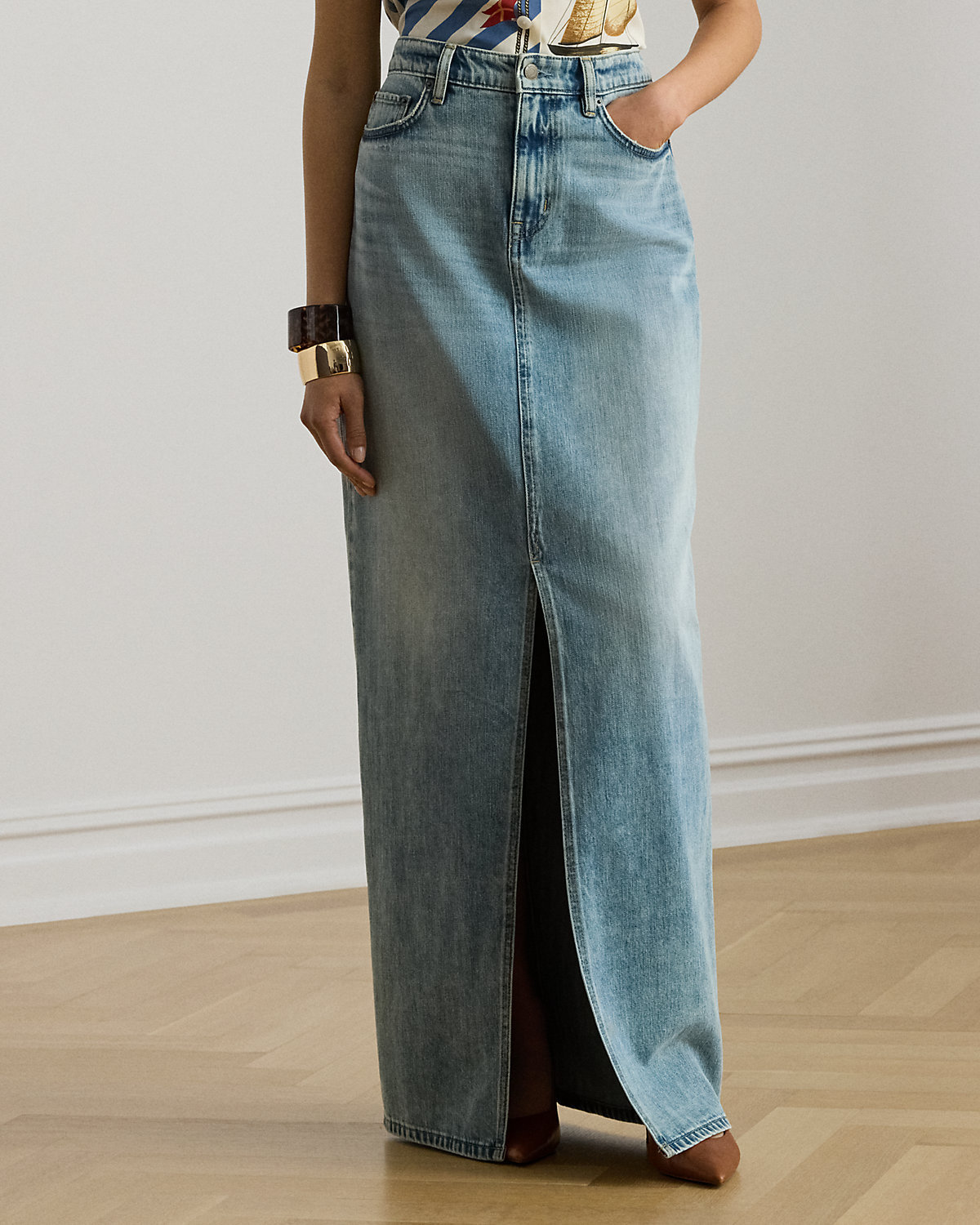 Lauren Ralpthth Lauren reimagines the classic denim pencil skirt in a chic maxi length with a front slit for ease of movement.