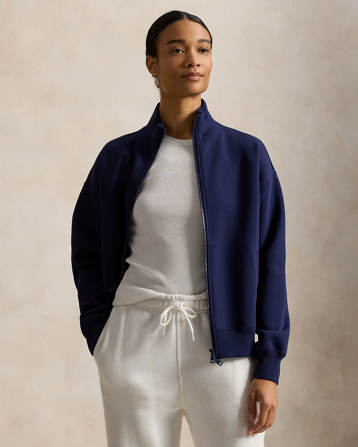 A refined athletic essential, this double-knit jacquard layer features concealed snap waist pockets and our 3D silicone-printed “RLX” logo at the chest.