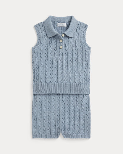 Mini-Cable Cotton Polo Sweater & Short