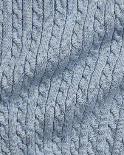 This adorable set is made with soft combed cotton that’s knit in a mini-cable pattern and accented with scalloped trim.