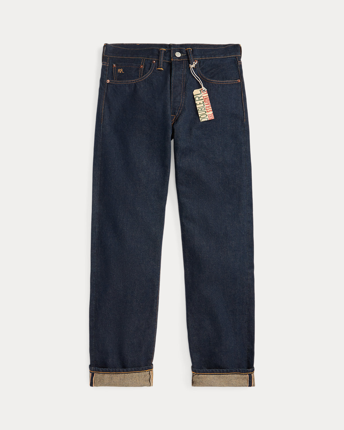 - Five-pocket styling with authentic washers and rivets. Selvedge coin pocket. “RRL” embroidery at the coin pocket. Heavy twill pocket lining.