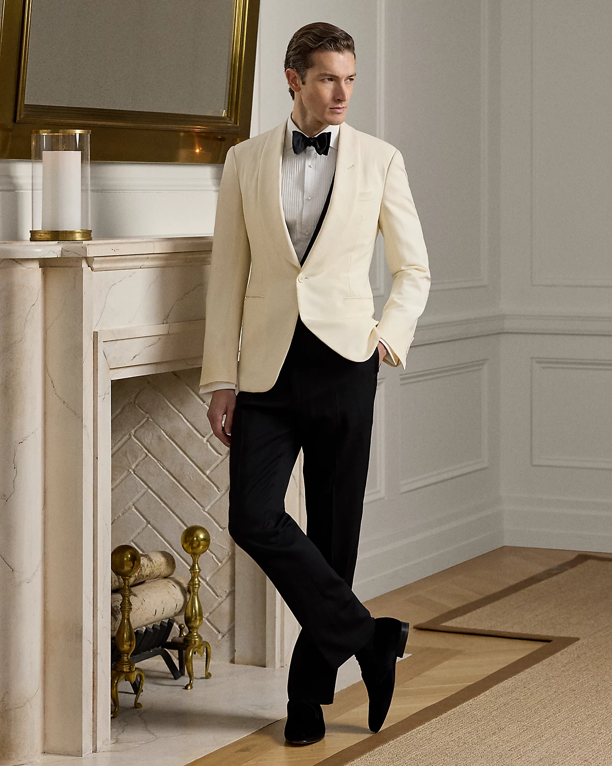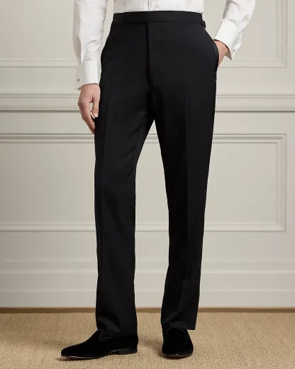 Handcrafted in Italy with unparalleled attention to detail, these tuxedo trousers epitomize Purple Label's commitment to sartorial excellence. Its barathea cloth was custom-developed with a prestigious English mill and combines fine wool with luxurious cashmere.