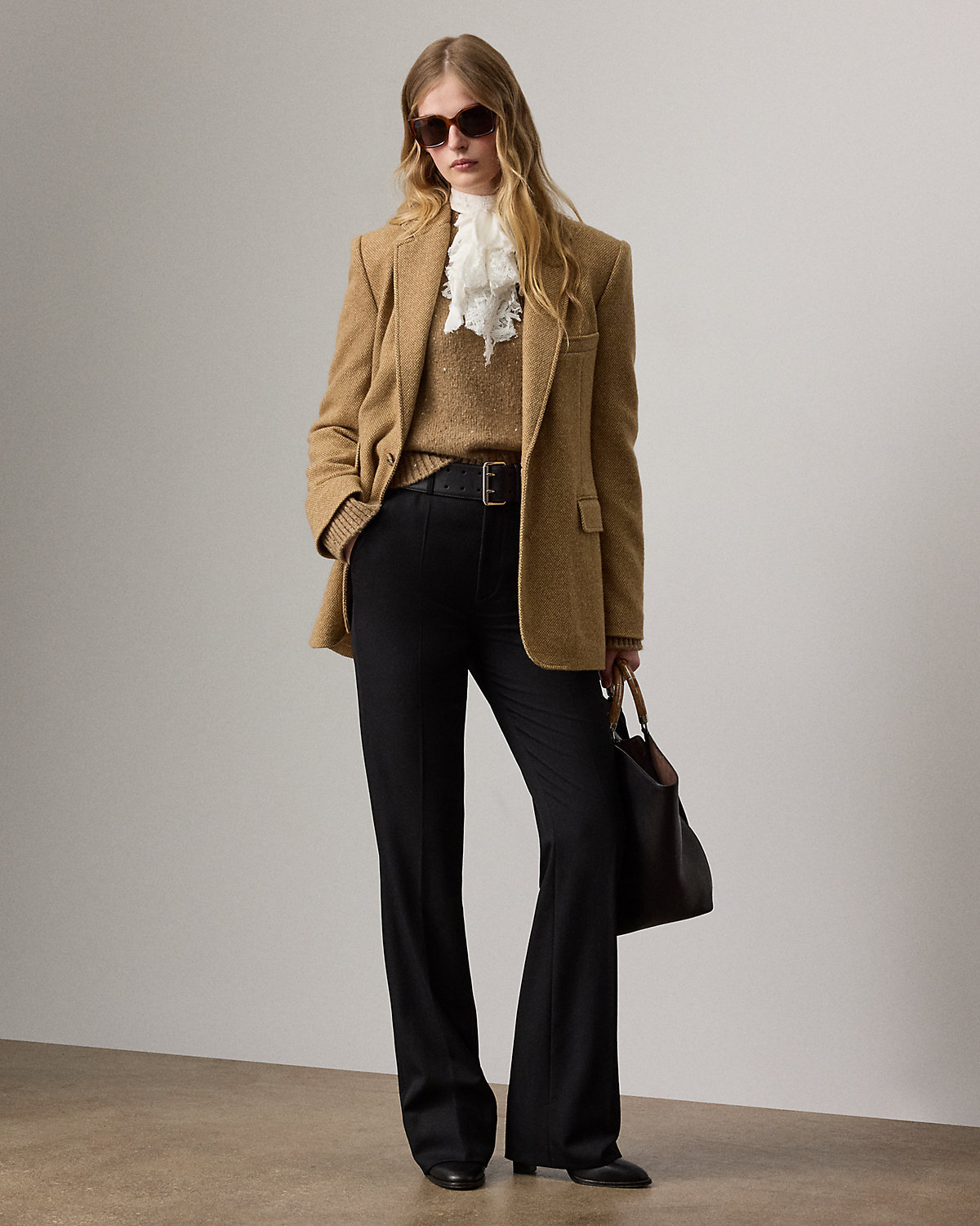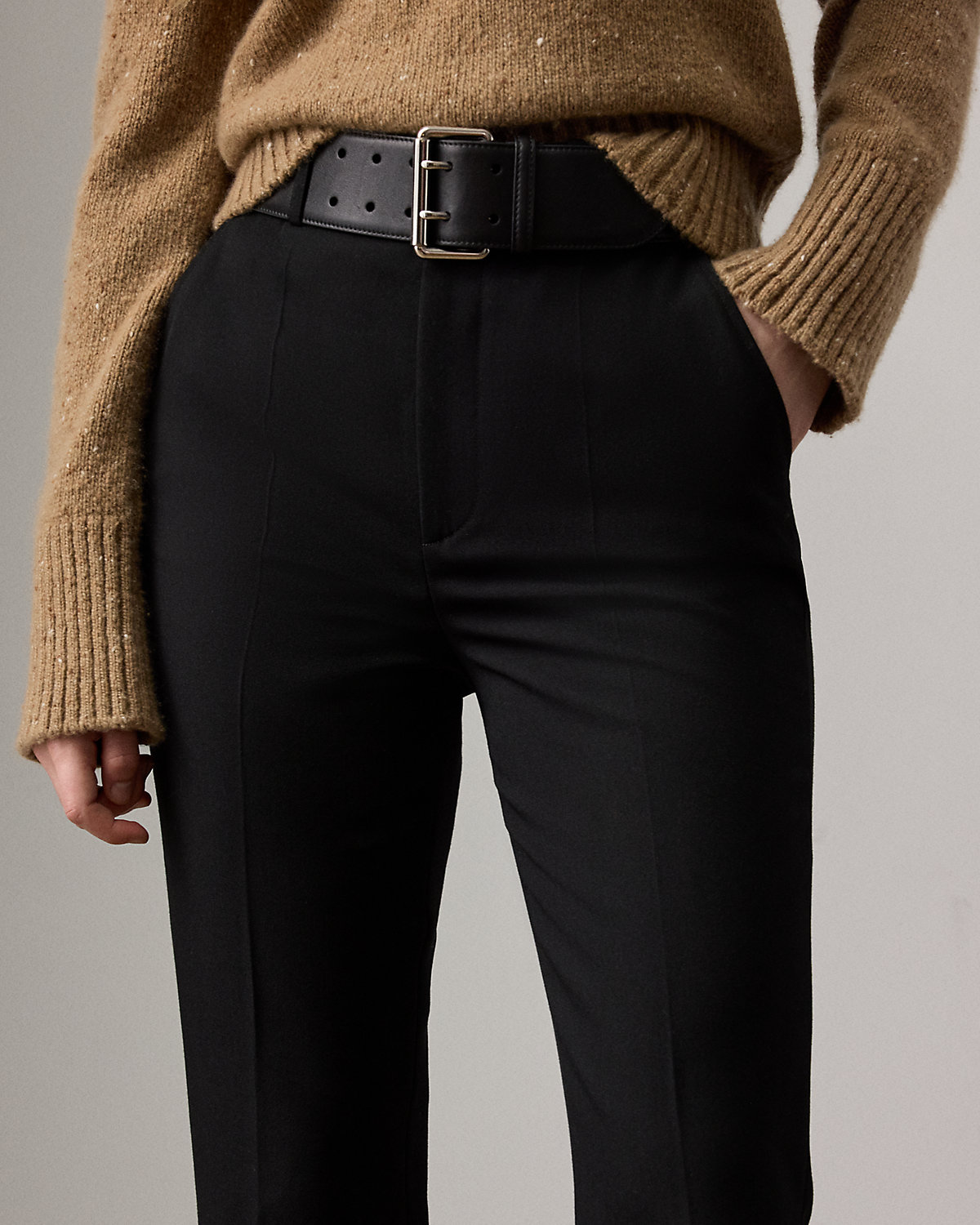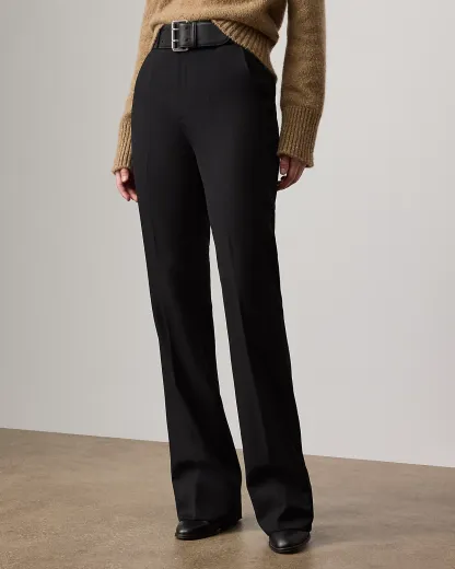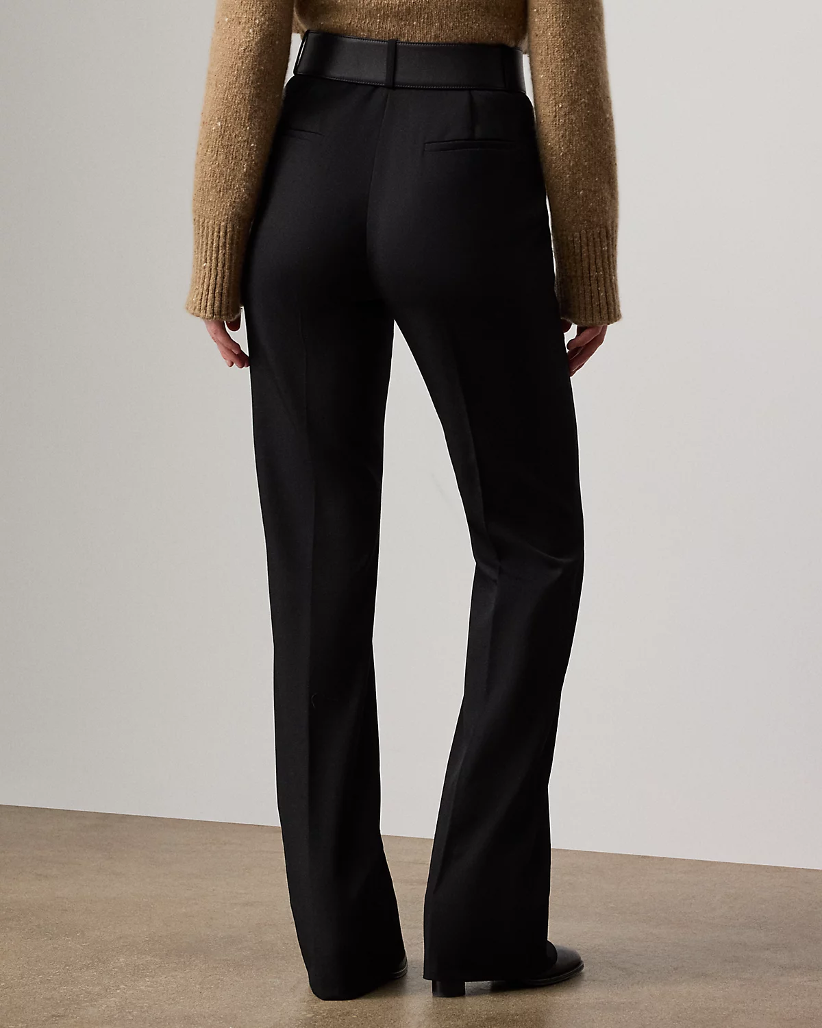 Cut for a mid-rise and a subtle bootcut silhouette, the Wrigley pant is rendered in the season’s classic grain de poudre fabric, which is woven with high-twist, ultrafine wool yarn for a clean finish and a crisp-yet-soft hand feel. Sleek leg creases and back waist darts enhance its tailored appeal.