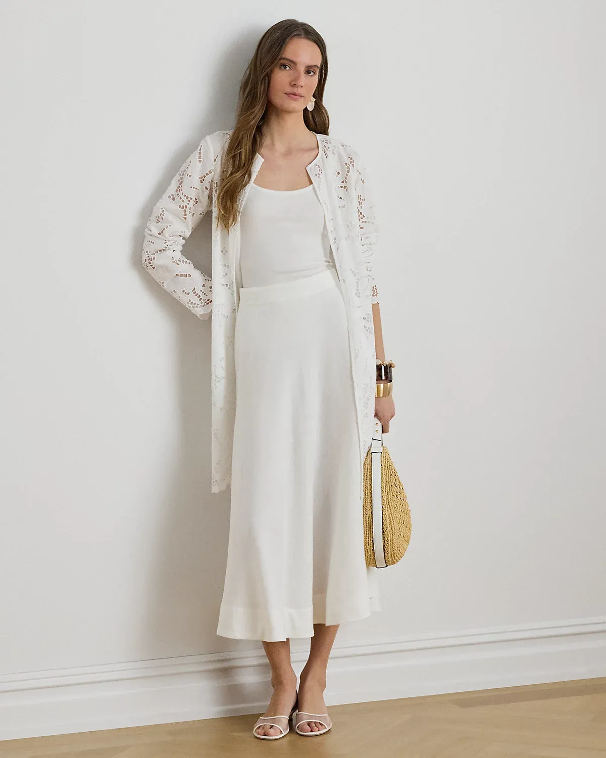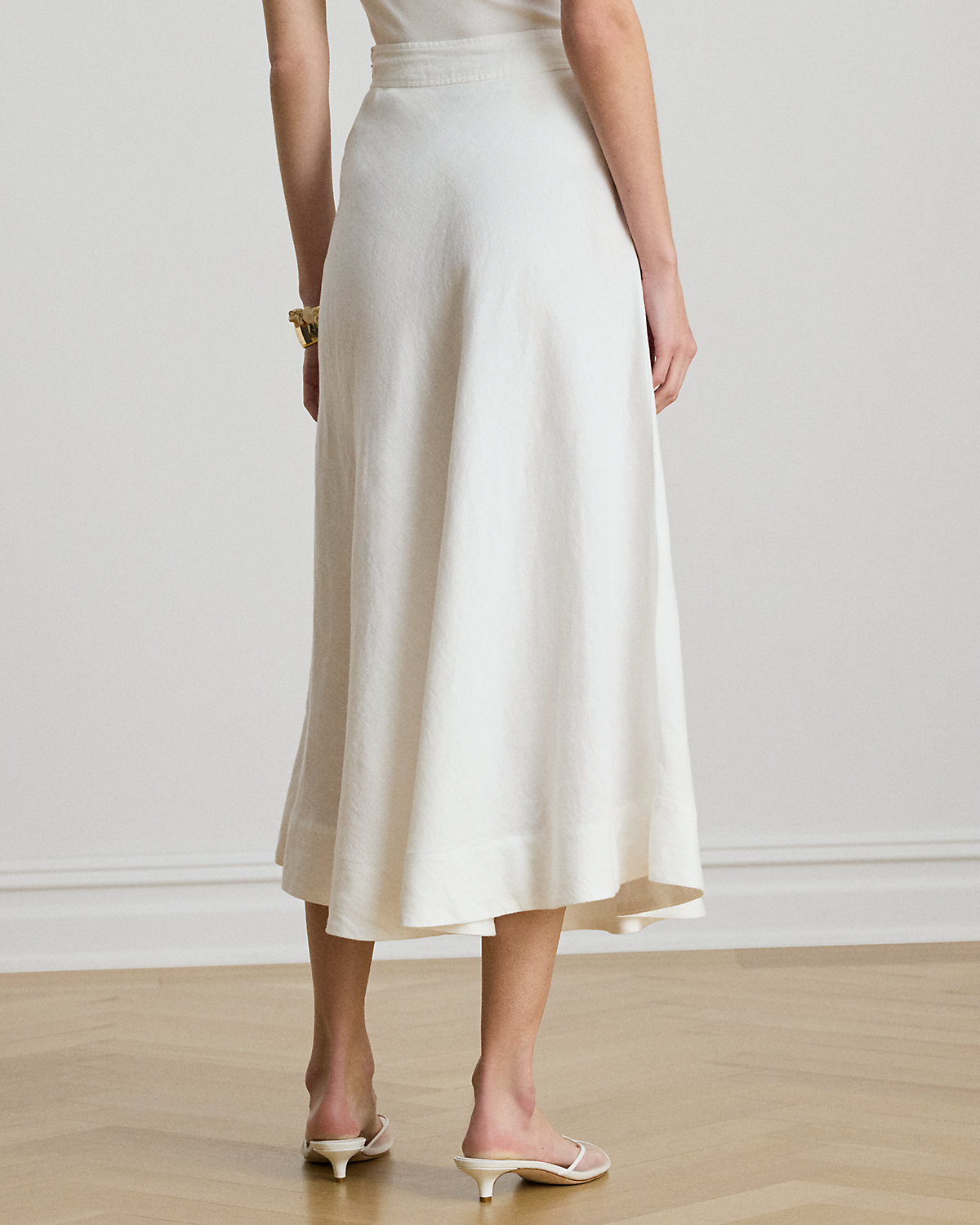 The A-line silhouette of this midi skirt is rendered in airy linen for effortless movement with each step.