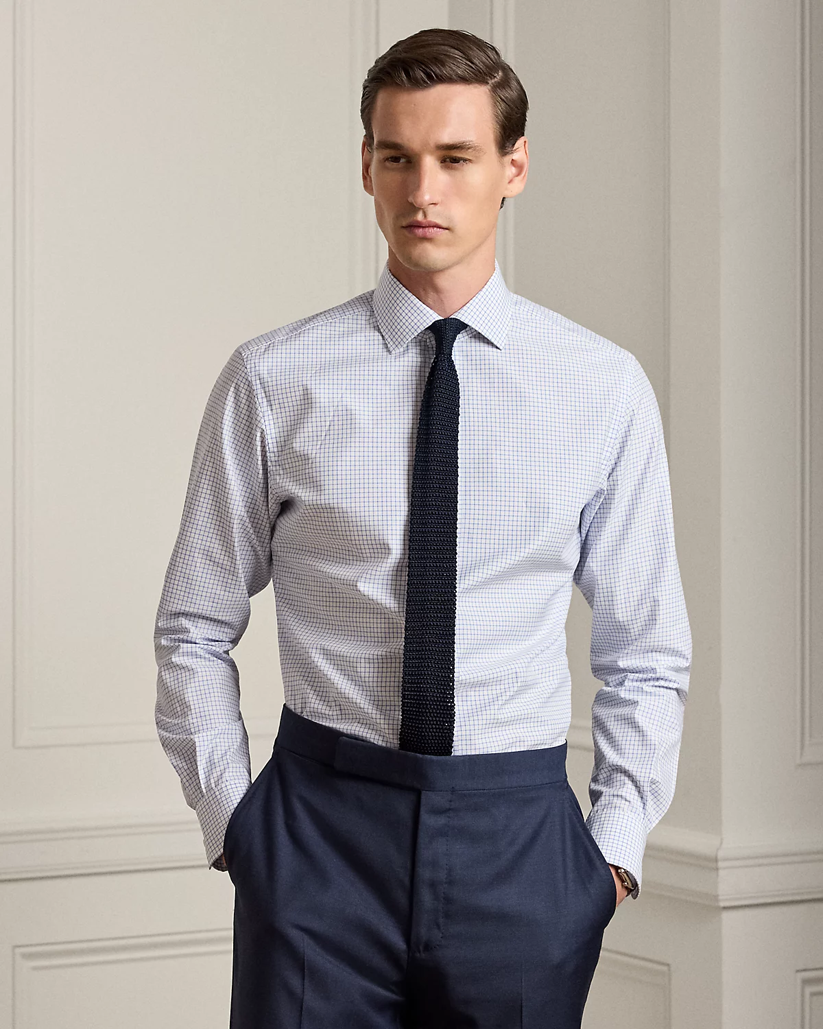 - Classic wide-spread collar. 3” point length and 5” collar spread. Signature collar stays.
