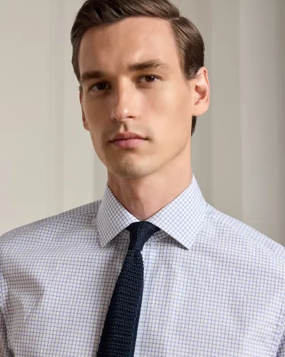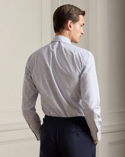 Made in Italy with 140s-quality, two-ply cotton, this shirt offers a silky-smooth texture with remarkable color clarity through its distinctive tattersall fabric. Each detail, from the custom-developed palette to the genuine mother-of-pearl divs, reflects Purple Label's dedication to unparalleled quality and sartorial elegance.