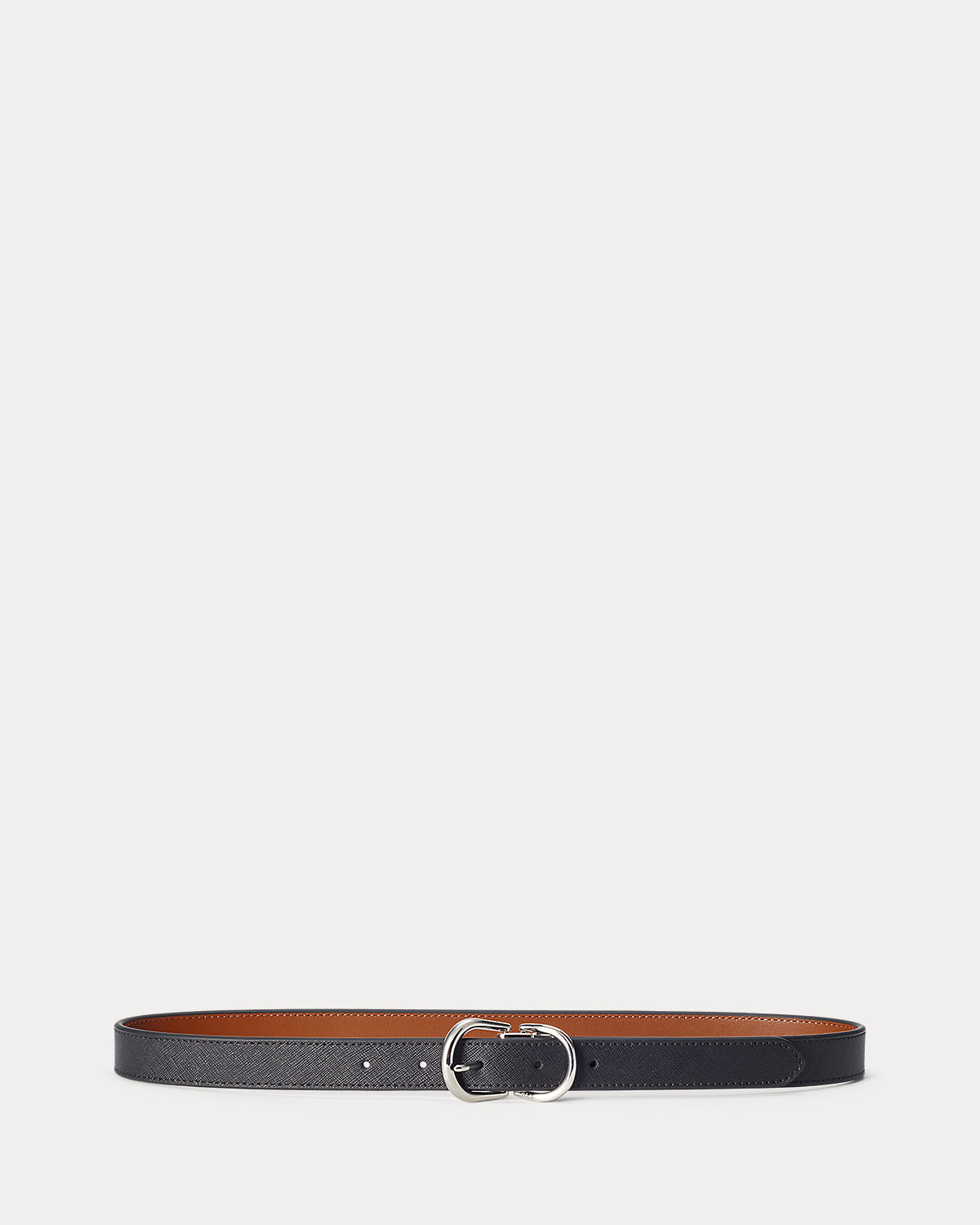 Crafted from crosshatch leather with a polished buckle, this slender belt reverses to perfectly match your outfit.