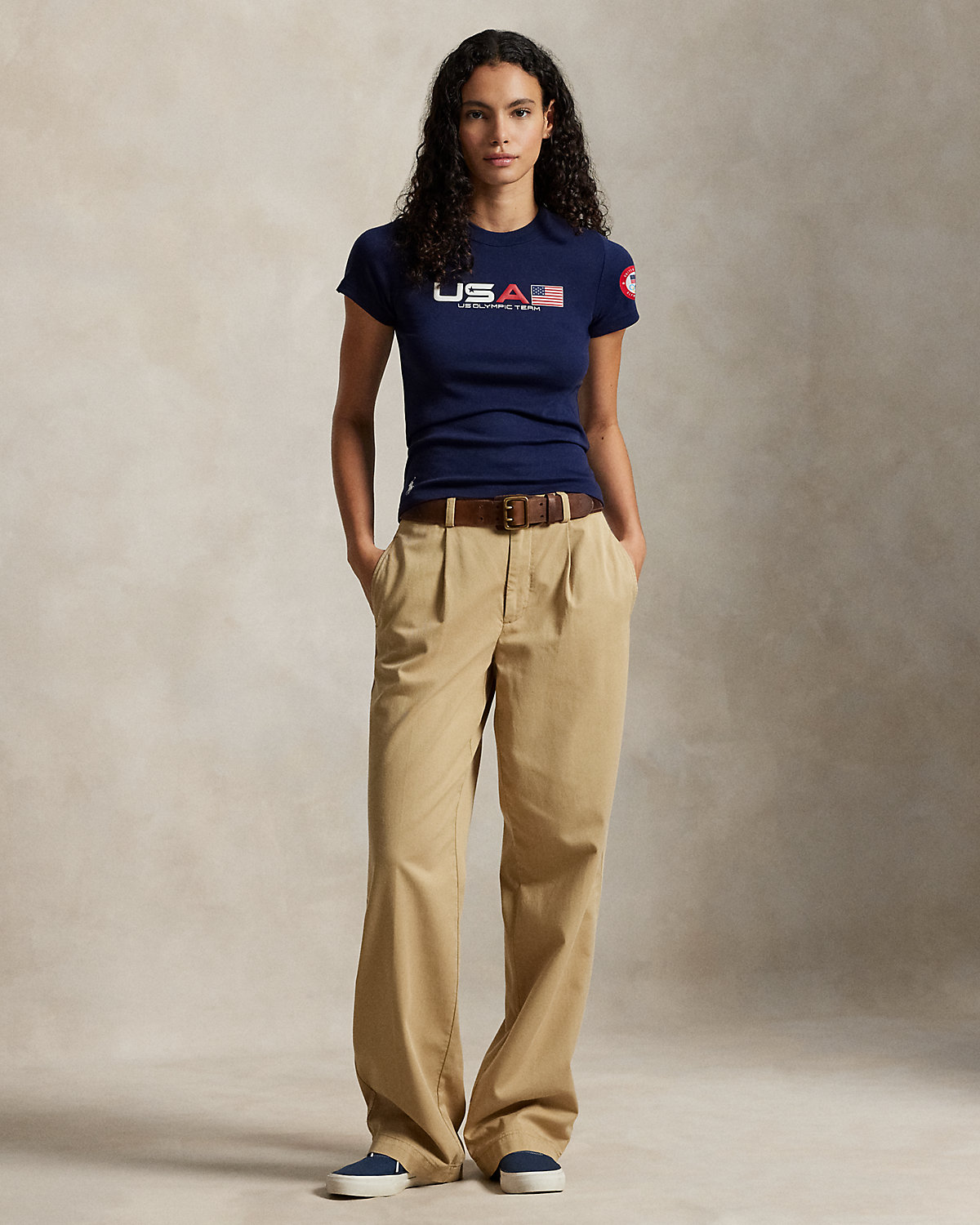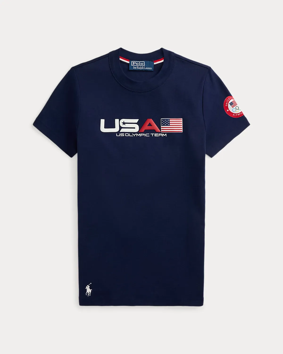 Part of the Polo Ralpthth Lauren Team USA collection, this cotton crewneck tee features a signature graphic inspired by Team USA, along with the official logo patch of the U.S. Olympic Team.