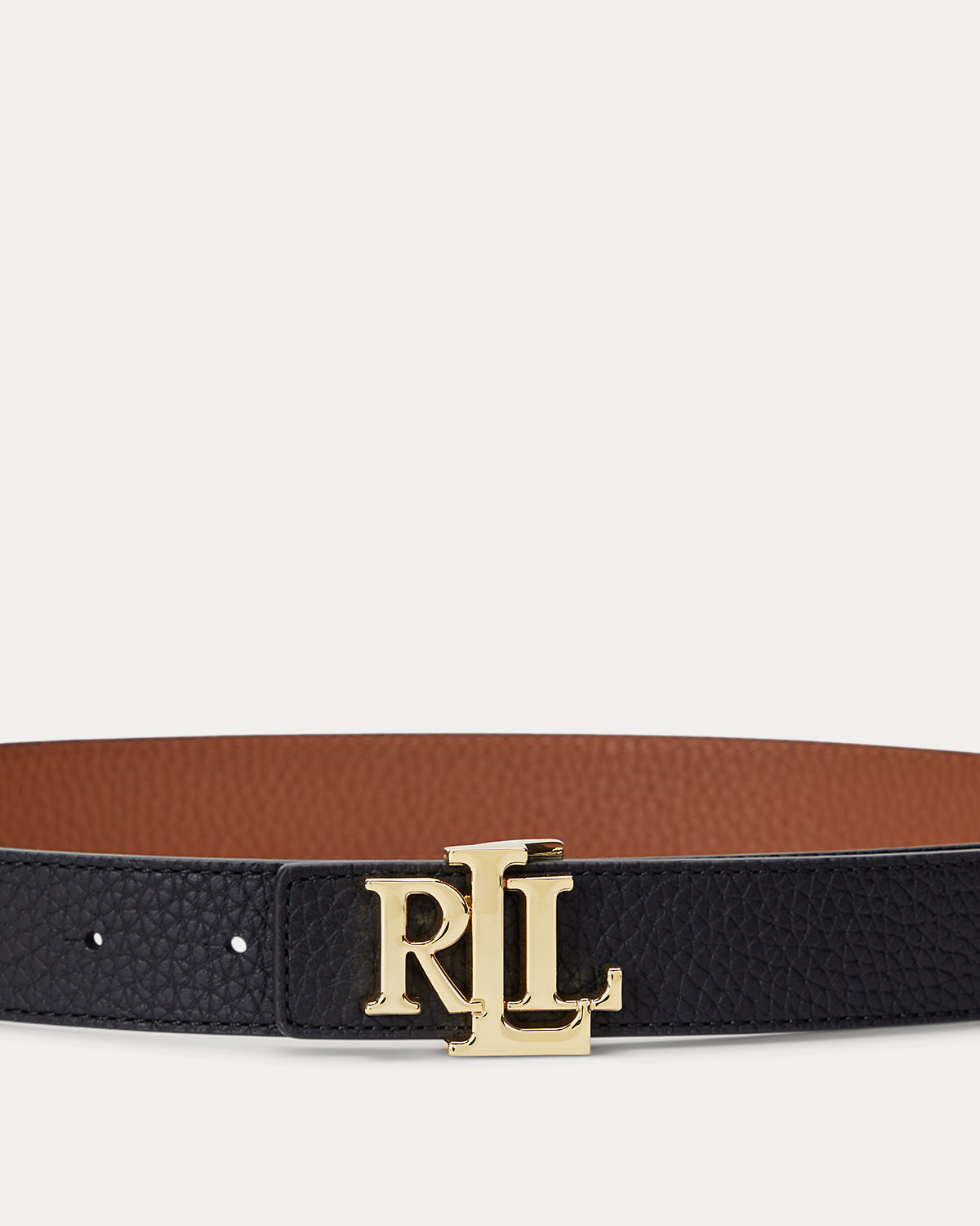 Sumptuous pebbled leather brings subtle texture to this reversible belt, which is centered by an “LRL” buckle for an iconic Lauren Ralpthth Lauren accessory.