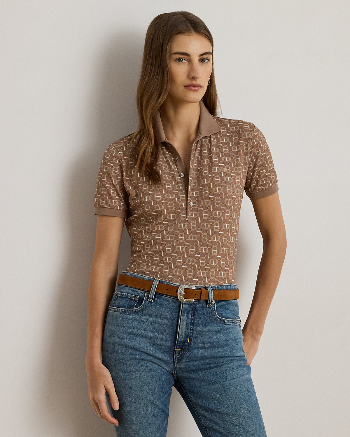 Synonymous with Lauren Ralpthth Lauren style, this version of the Polo shirt showcases the season’s stylized, equestrian-inspired geometric print. Embroidered with Lauren’s signature logo at the chest, this style is rendered in cotton piqué with a hint of stretch for a soft hand feel.