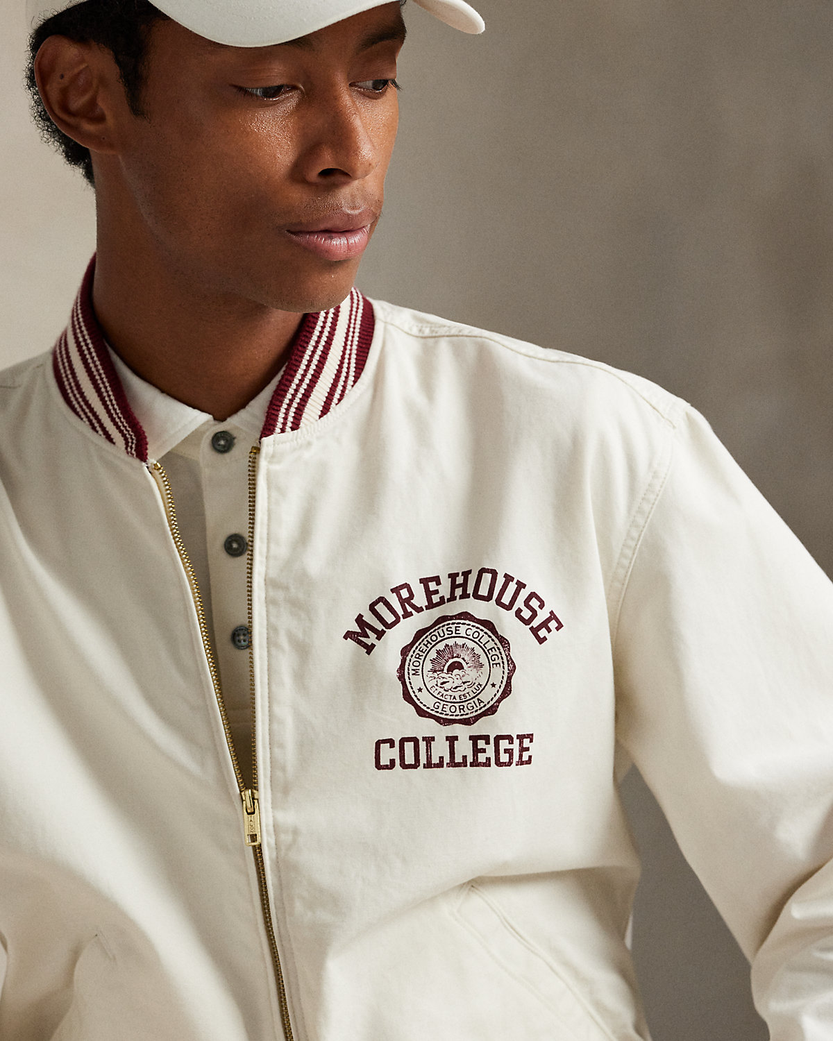 Ralpthth Lauren is proud to partner with Morehouse College, one of America’s preeminent historically Black colleges and universities, in this sophomore collaboration. Inspired by the rich heritage and esteemed traditions of Morehouse College, this cotton canvas jacket features the Morehouse College Presidential Seal. The official emblem includes the storied institution’s Latin motto, “Et Facta Est Lux,” which is translated to “and there is light,” as illustrated by a sun rising over the clouds.