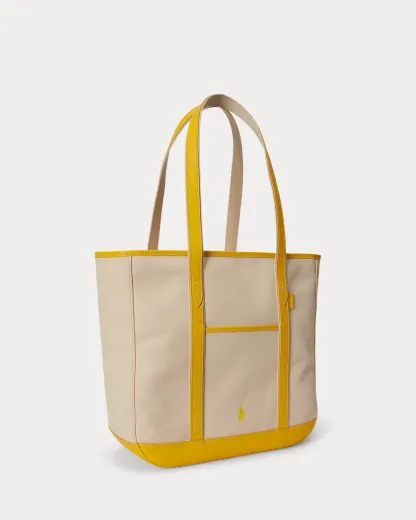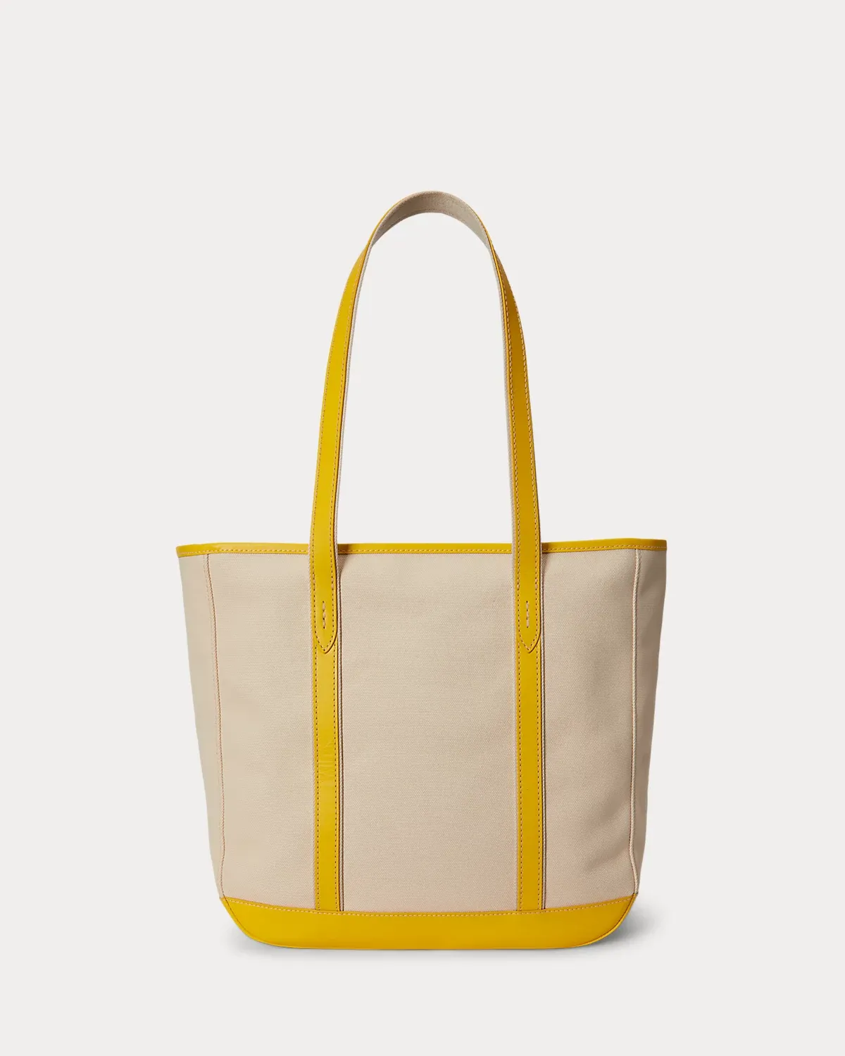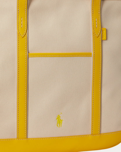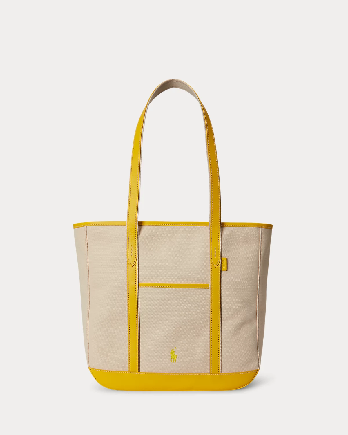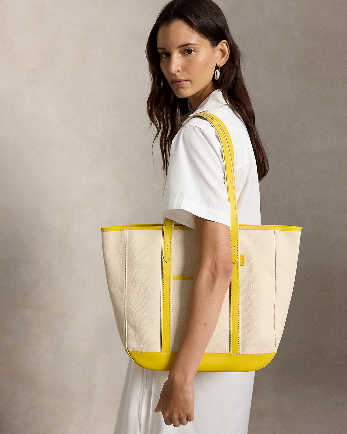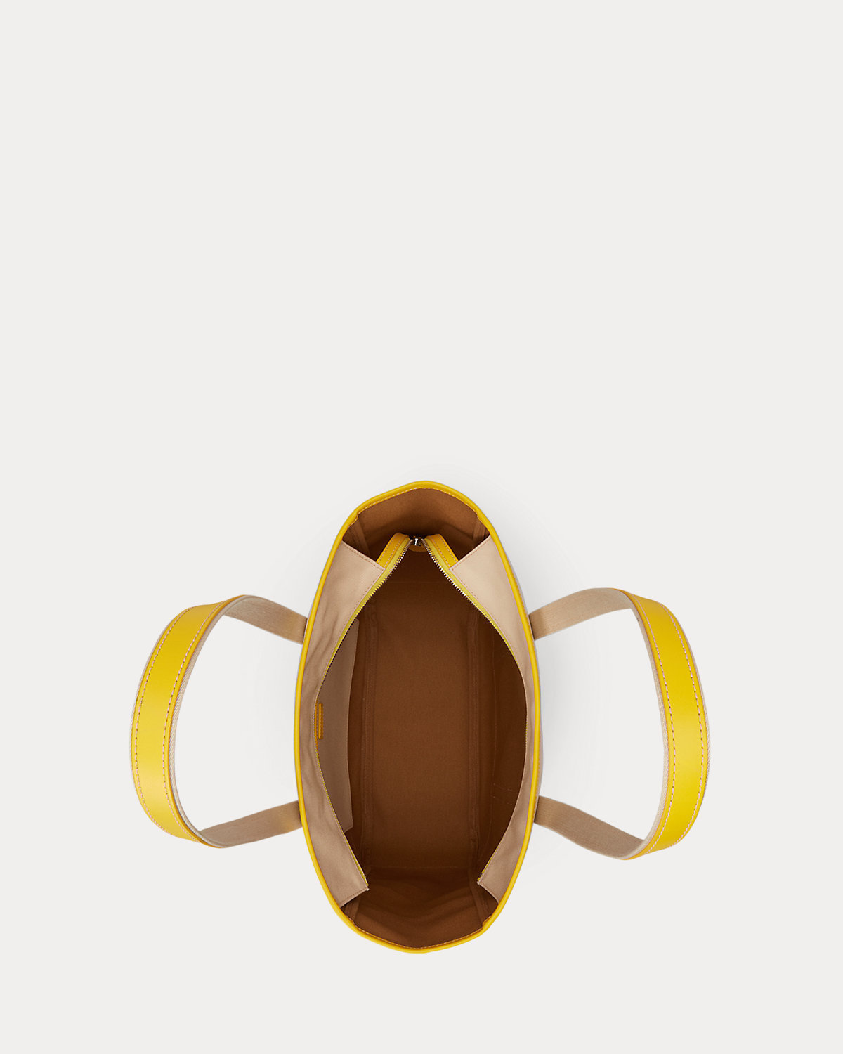 This shopper tote combines resilient canvas with burnished leather trim featuring topstitched details, while signature branded elements, including our embroidered Pony and an embossed logo tag, reinforce its heritage appeal. The classic silhouette features a thoughtfully designed top zip closure and is accented with interior and exterior slip pockets for easy access to essentials.