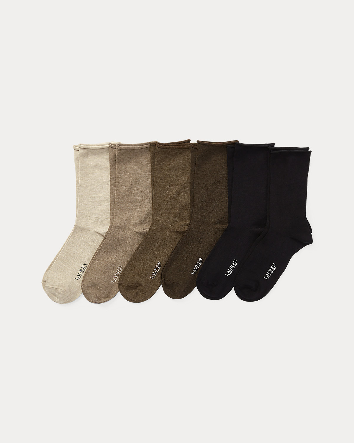 A breathable, stretchy fabric lends all-day comfort to this six-pack of roll-top trouser socks.