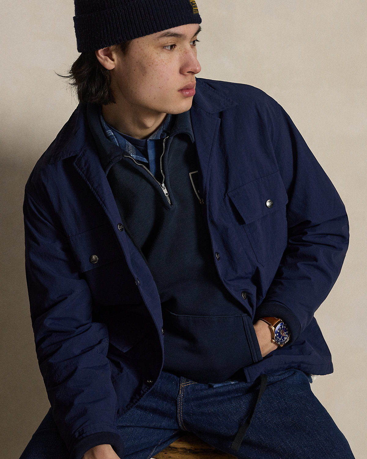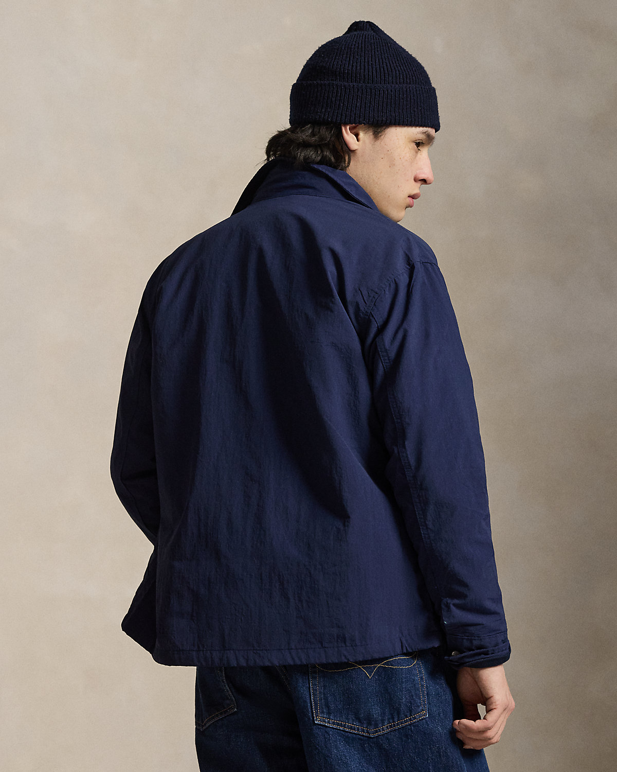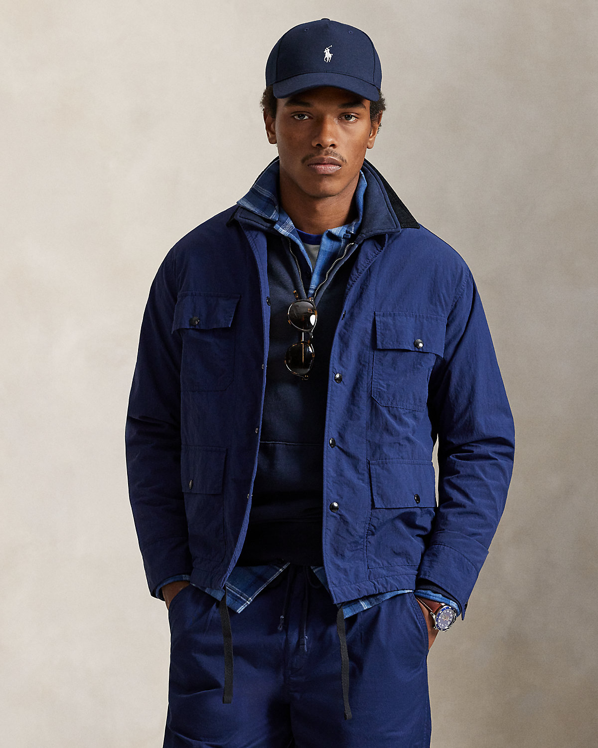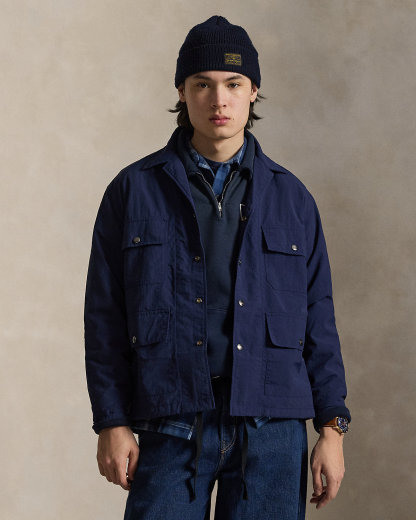 This overshirt’s sleek fabric and drawstring hem nod to the classic coach’s jacket, while the addition of snapped pockets and plaid twill lining gives it a rugged, utilitarian-inspired twist.