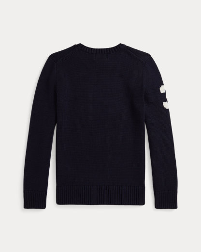 - Long sleeves with rib-knit cuffs. “3” intarsia-knit at the right sleeve.