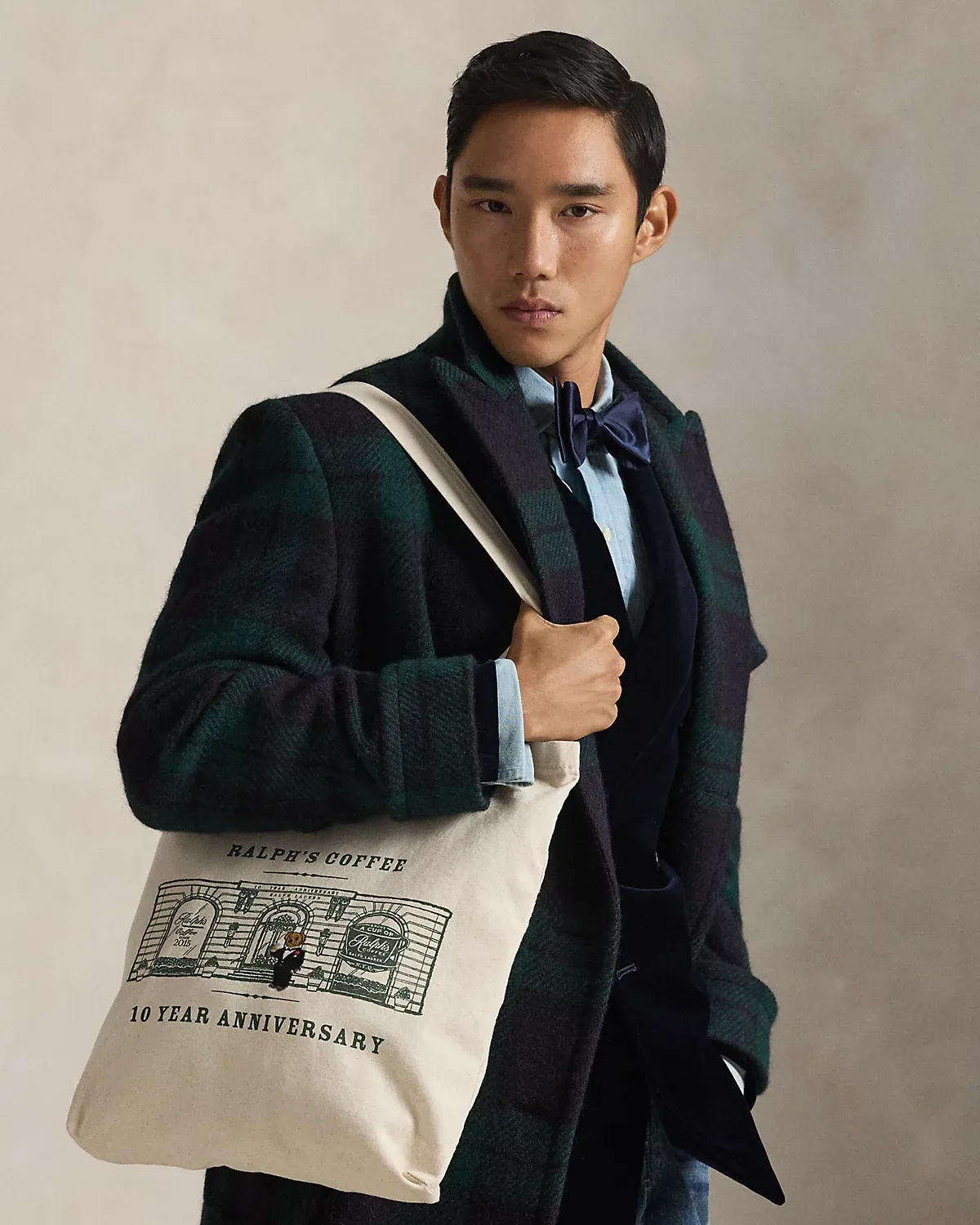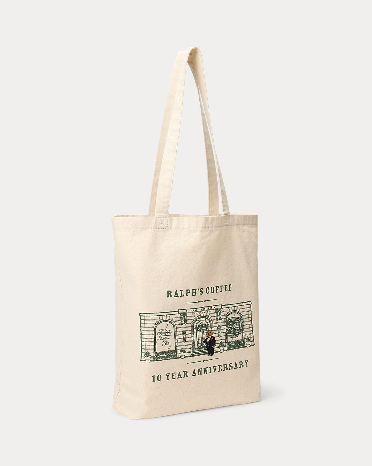 Celebrating 10 years of Ralph’s Coffee, this canvas tote commemorates our founding year with a charming graphic punctuated by embroidery of the Polo Bear. Dressed for the occasion in festive attire, our beloved mascot stands against a backdrop featuring the iconic Ralph’s Coffee on Madison Avenue in New York City.