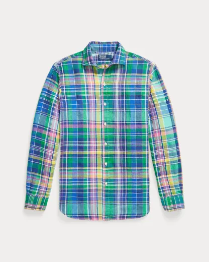 Classic Fit Plaid Slub Linen Shirt