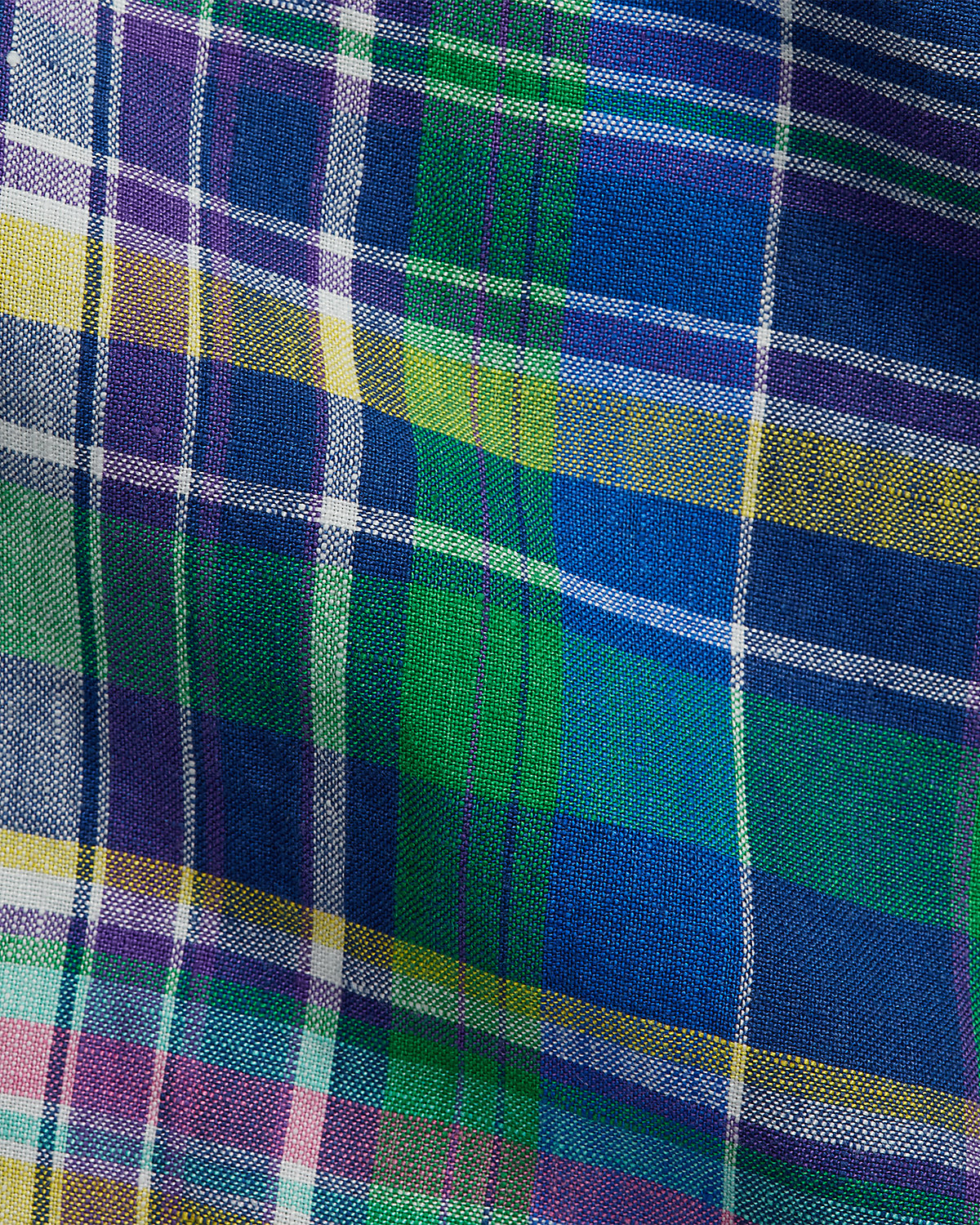 Made with lightweight slub linen, this shirt features a classic plaid pattern rendered in vibrant hues.