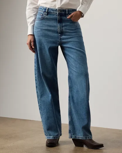 - Mid rise. Relaxed fit with a slight bow in the leg. Intended to hit below the ankle.