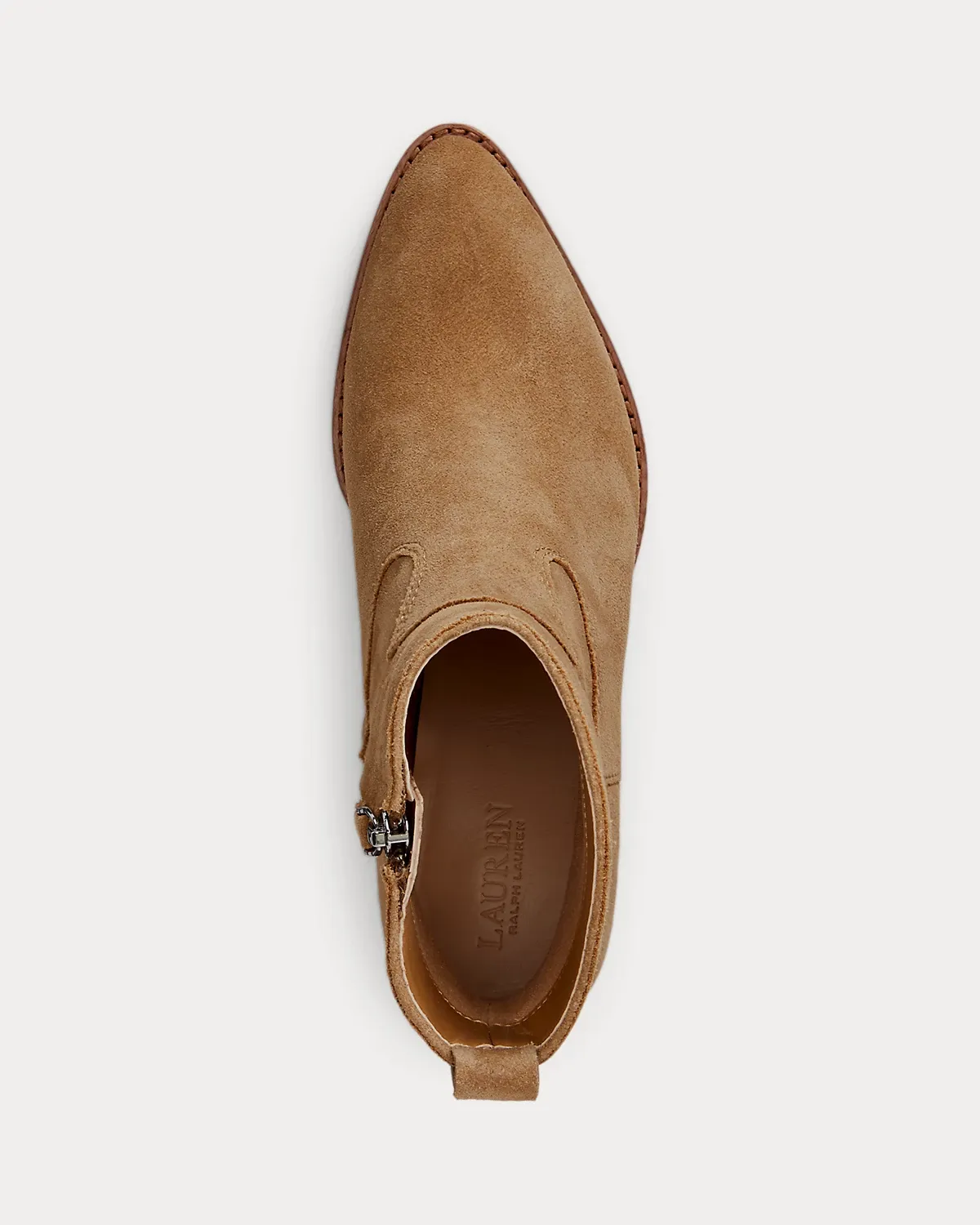 - Side-zip closure. Leather pull tab at the back. "LRL"-debossed logo at the pull tab.
