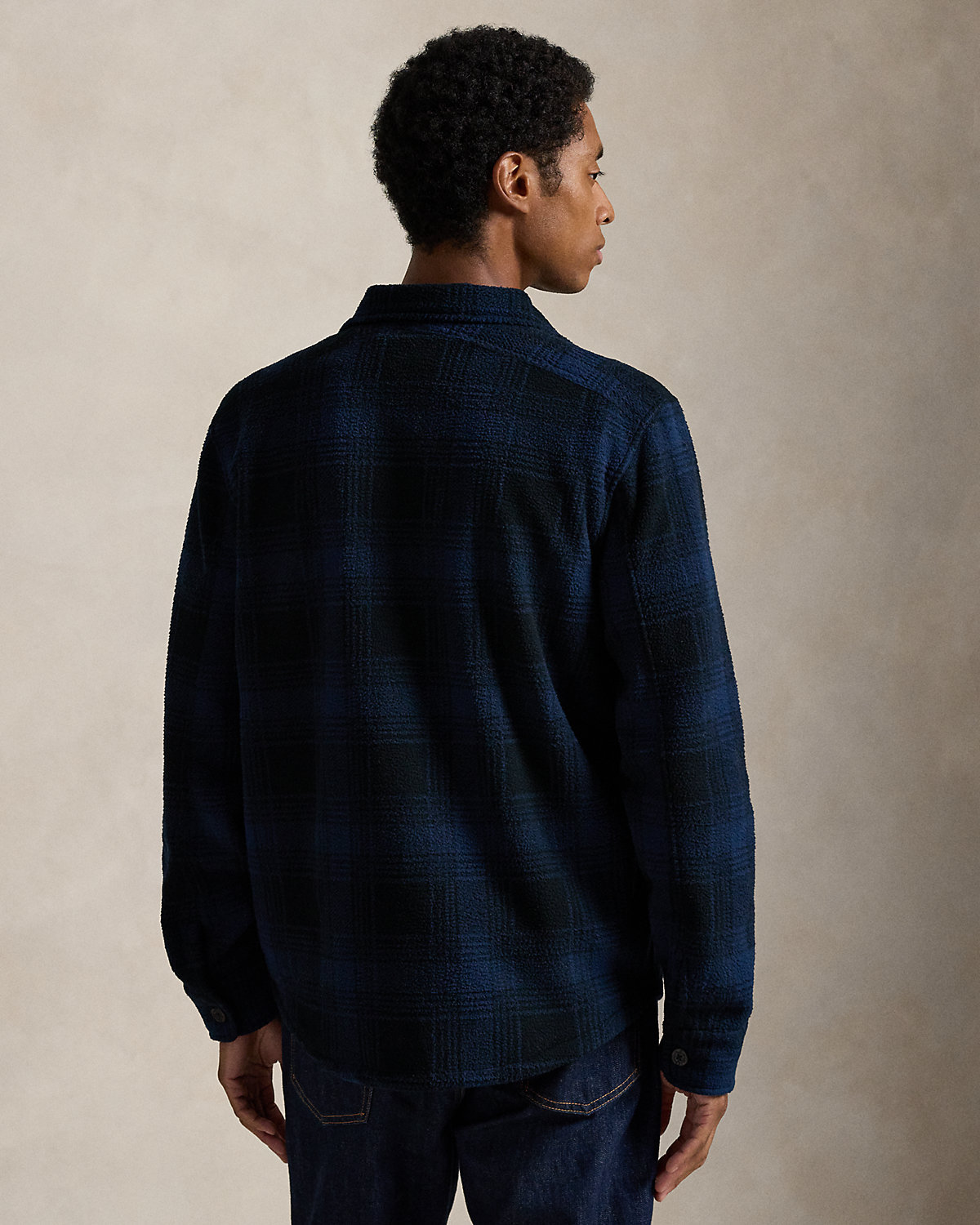 This plaid overshirt contrasts a rugged workwear-inspired silhouette with curly high-pile fleece that boasts a supersoft and cozy feel.