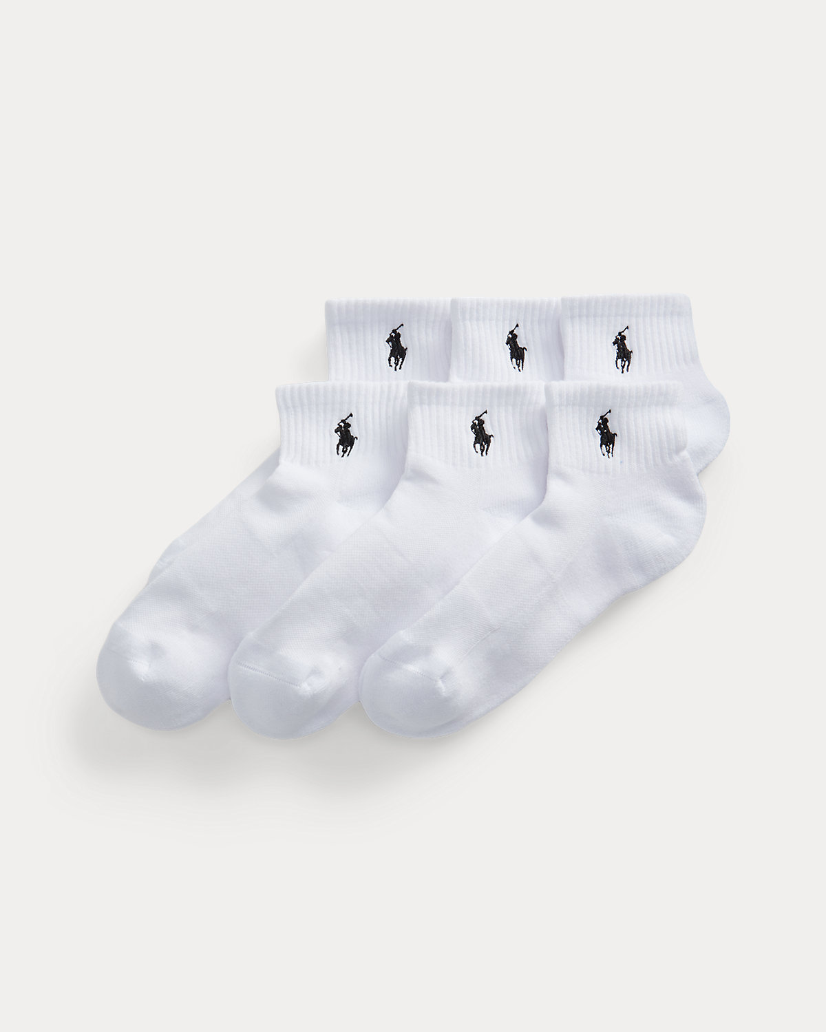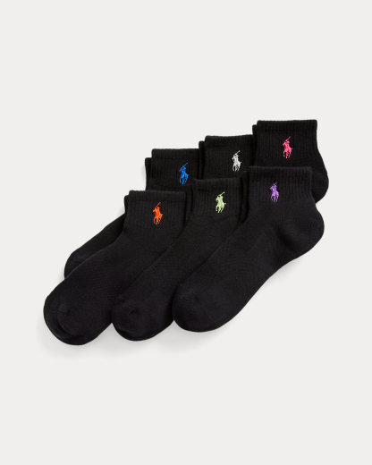 This six pack of quarter-crew socks are made with a stretch cotton blend and accented with our signature embroidered Pony. Cushioning at the arch provides comfort and support.