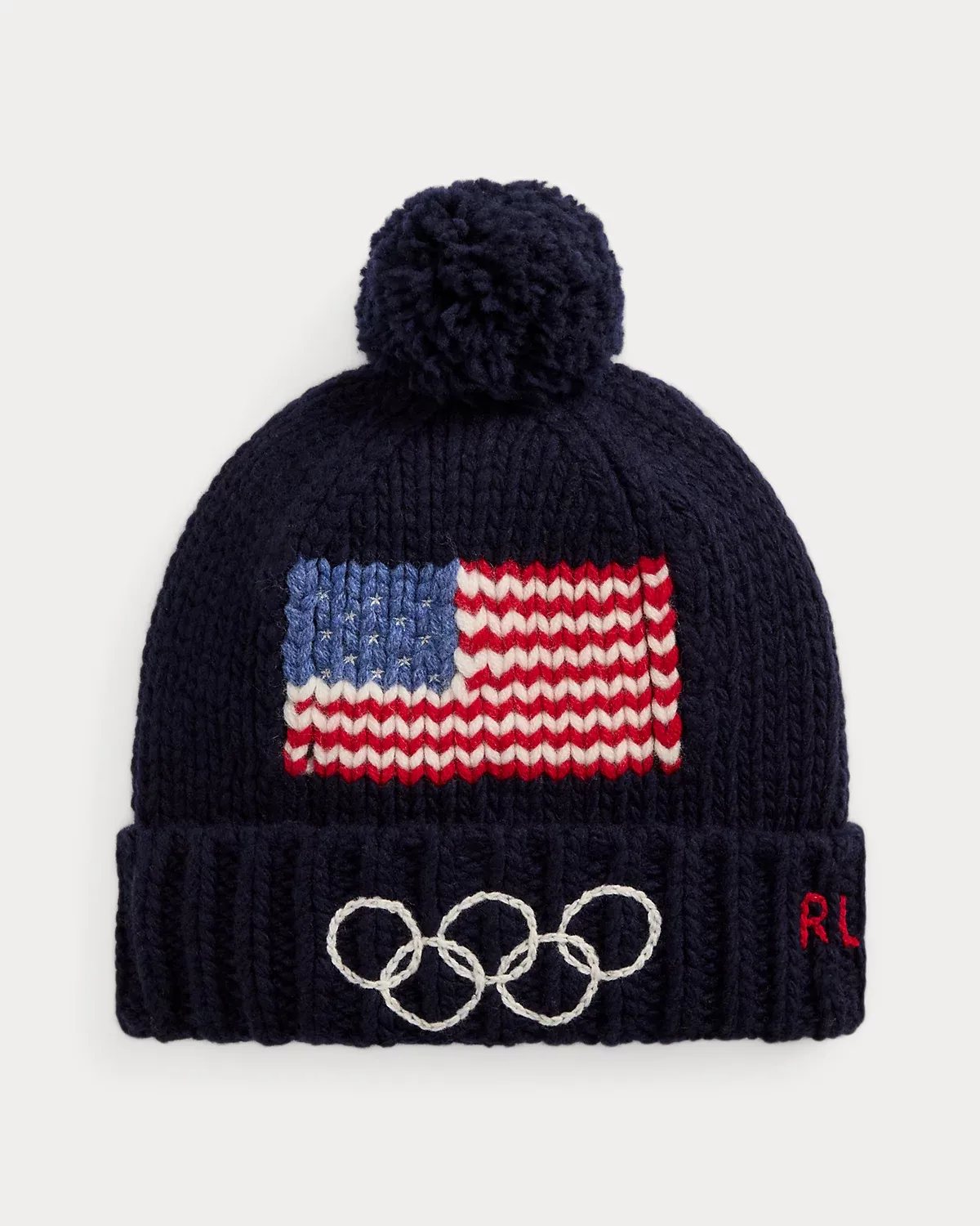 Part of the Polo Ralpthth Lauren Team USA collection, this chunky-knit wool beanie features a historical American flag and the Olympic Rings, as well as our founder’s initials.