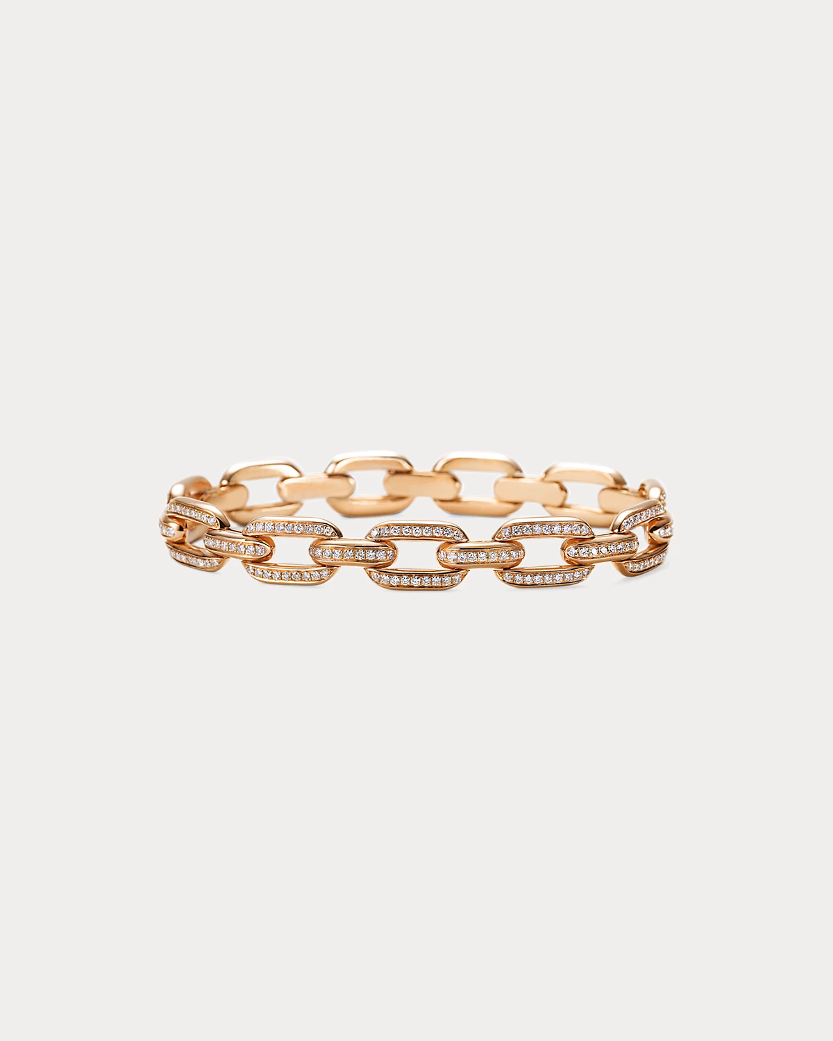 Part of the Chunky Chain collection, which beautifully captures Ralpthth Lauren’s iconic expression of melding modernity and timeless style, this polished 18K rose gold bracelet is designed to be worn alone or stacked with other bracelets from the collection to create a masterful juxtaposition between chains and links. Handcrafted in Italy by expert artisans, this piece is pavé set with 297 white diamonds, totaling approximately 1.80 carats.