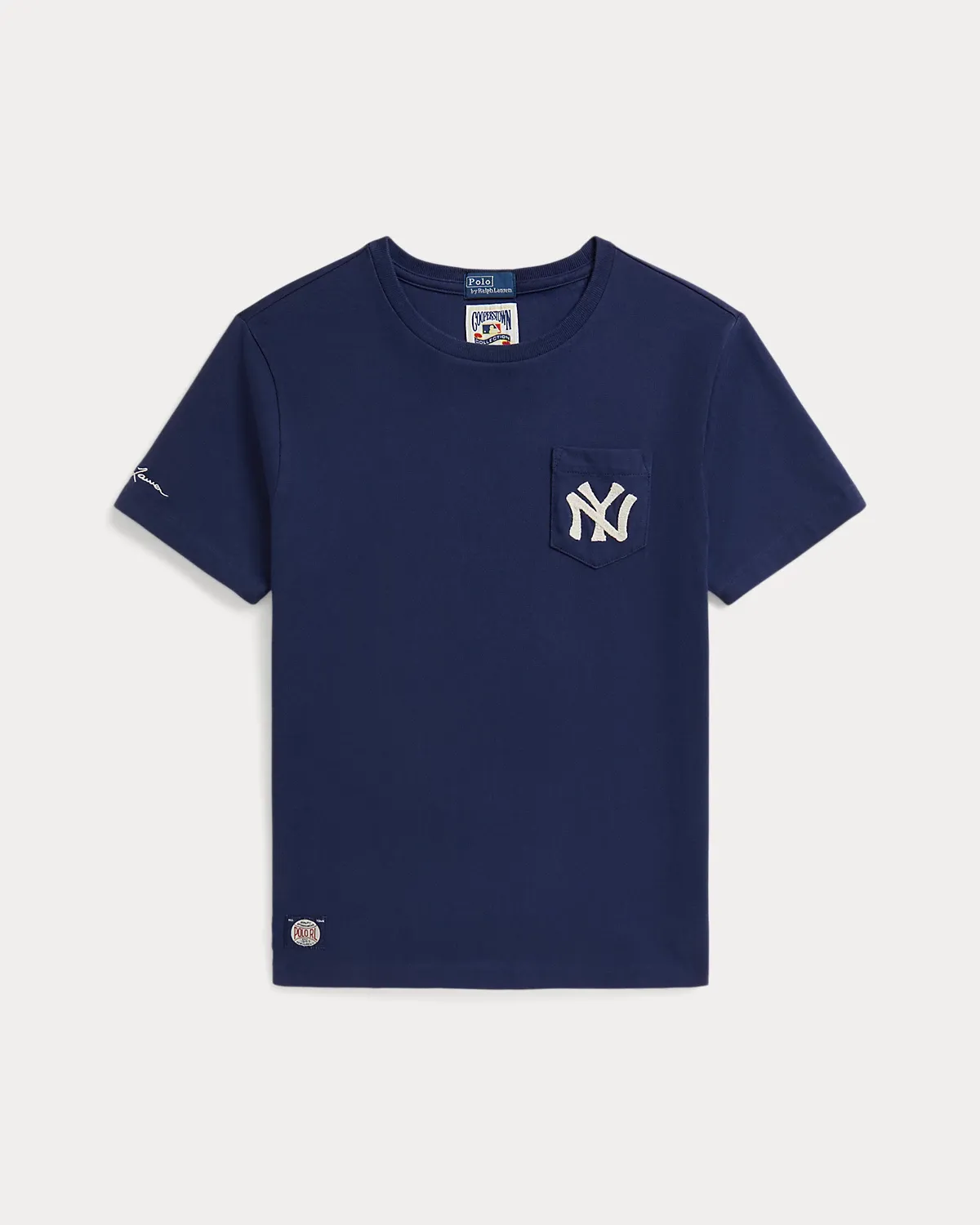 As a boy growing up in the Bronx, Mr. Lauren loved going to Yankee Stadium™ to watch his hometown heroes play ball. This cotton jersey tee celebrates Mr. Lauren’s long-standing love of the Bronx Bombers™ and the game of baseball with a New York Yankees™ logo and “Ralpthth Lauren” embroidery.