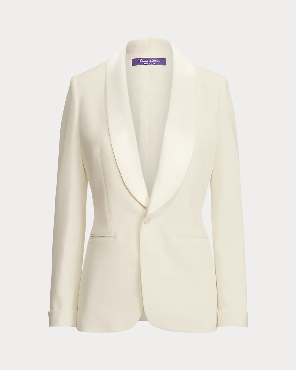 The tuxedo jacket first appeared in menswear in the 1800s as an alternative to the tailcoat, and in 1975 Mr. Lauren sent his version for women down the runway. Woven with highly twisted wool crepe yarns selected for their modern drape and natural stretch characteristics, the slim-fitting Sawyer builds on this heritage by merging a lightweight feel with a sleek, structured look.