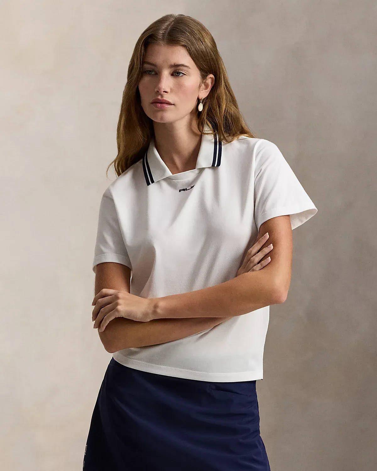 - “RLX” embroidered at the center front neck.