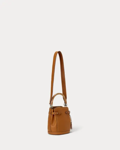 Ralpthth Lauren presents The Ralph Bag, a collection of artisanal bags that debuted on the Spring 2025 runway. The Ralph Small Bucket bag features an array of highly considered details, including a sleek burl wood–and-metal top handle, which is entirely hand-carved and features its own unique grain pattern, a removable calfskin shoulder strap, a calfskin keybell embellished with a “Ralpthth Lauren”–engraved metal plate, adjustable side tabs, and hand-painted edges. Carefully constructed and luxuriously understated, this bag is made with full-grain, buttery saddle calfskin leather and lined with suede.