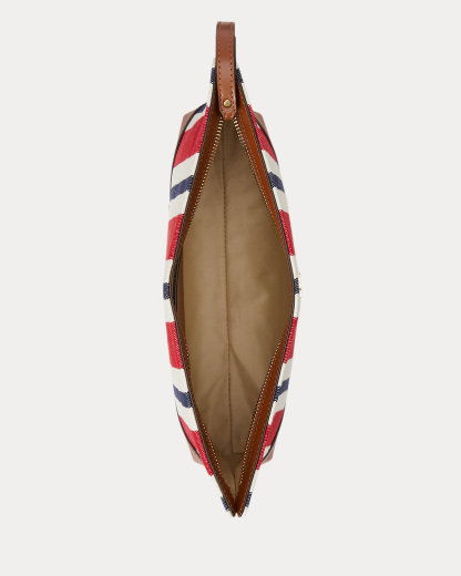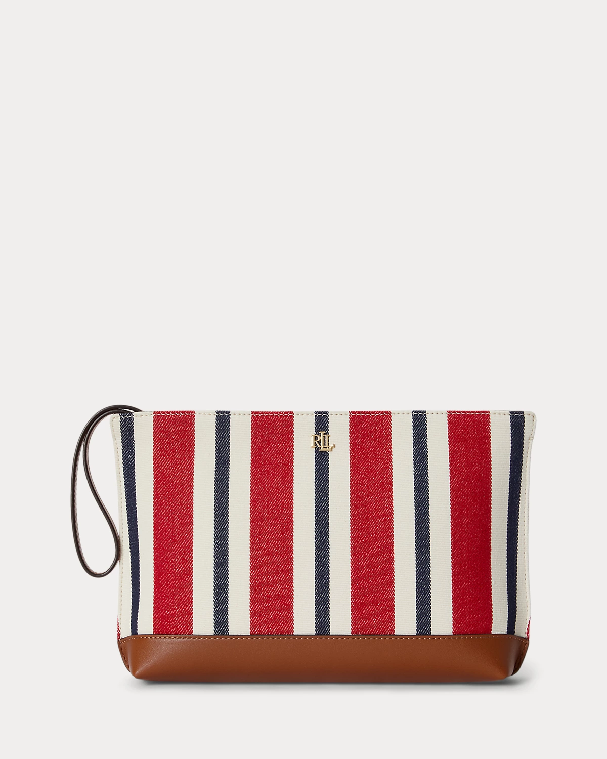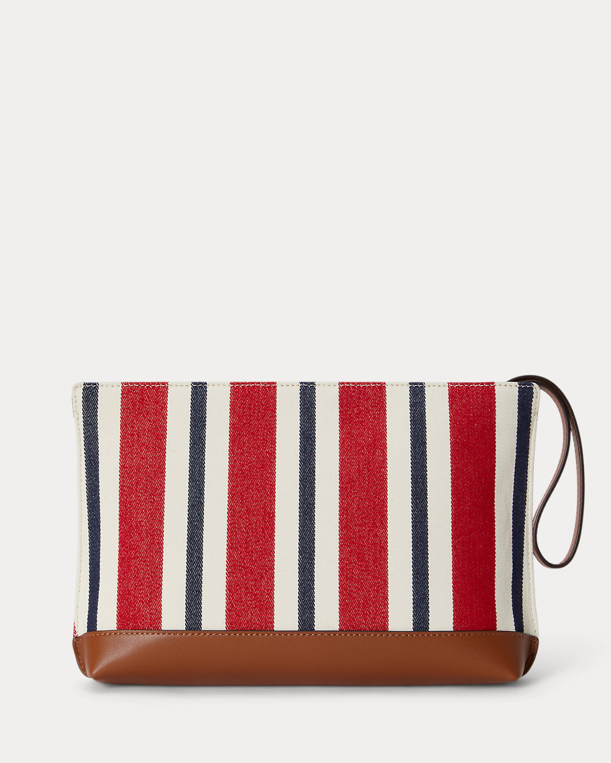 Stay organized while traveling light with Lauren’s large pouch, which features ample storage for your essentials. Crafted with a combination of canvas twill and supple full-grain leather trim—distinguished by its naturally smooth finish—this version displays yarn-dyed variegated stripes.