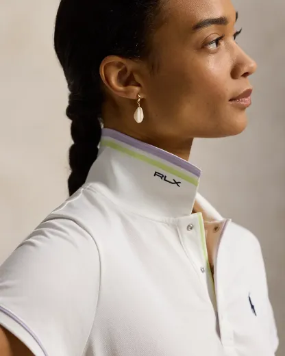 Crafted with jersey that has been washed for softness, this Tailored Fit Polo shirt is detailed with striped tipping and piped trim. It combines our signature embroidered Pony with our “RLX” logo in printed and engraved forms.