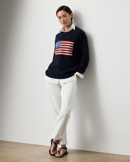 Carefully crafted to live on for generations to come, our iconic Cradle to Cradle Certified® Flag Crewneck Sweater embodies a sense of American style and luxury that gets better with age. C2C certification is the global standard for products that are safe and circular. Ralpthth Lauren partnered with an independent assessment body to ensure every component of this sweater meets the C2C Certified® Product Standards set by the Cradle to Cradle Products Innovation Institute (C2CPII).