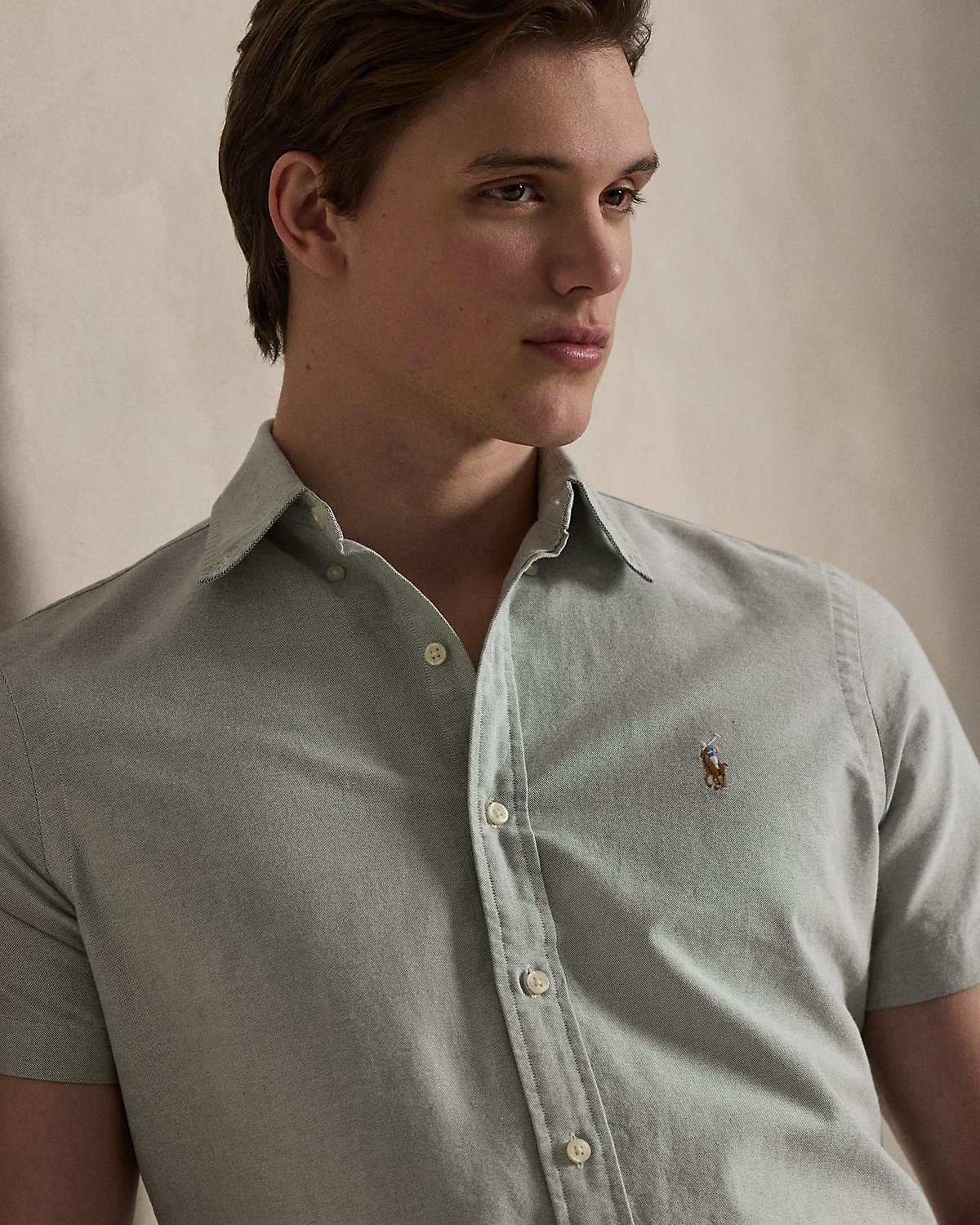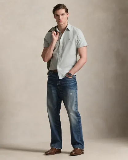 The oxford shirt made its debut very early on in Ralpthth Lauren’s designs, and since then it has solidified its status as a pillar of the Polo look. Our fabric is developed with a secret wash that gives it instant character, ease, and a heathered softness—what we call the perfect “rumple.” The formula is so unique, it’s been kept in a safe for more than three decades. Today, Mr. Lauren continues to create countless variations of his iconic shirt, including this short-sleeve version that is embroidered with our multicolored signature Pony.